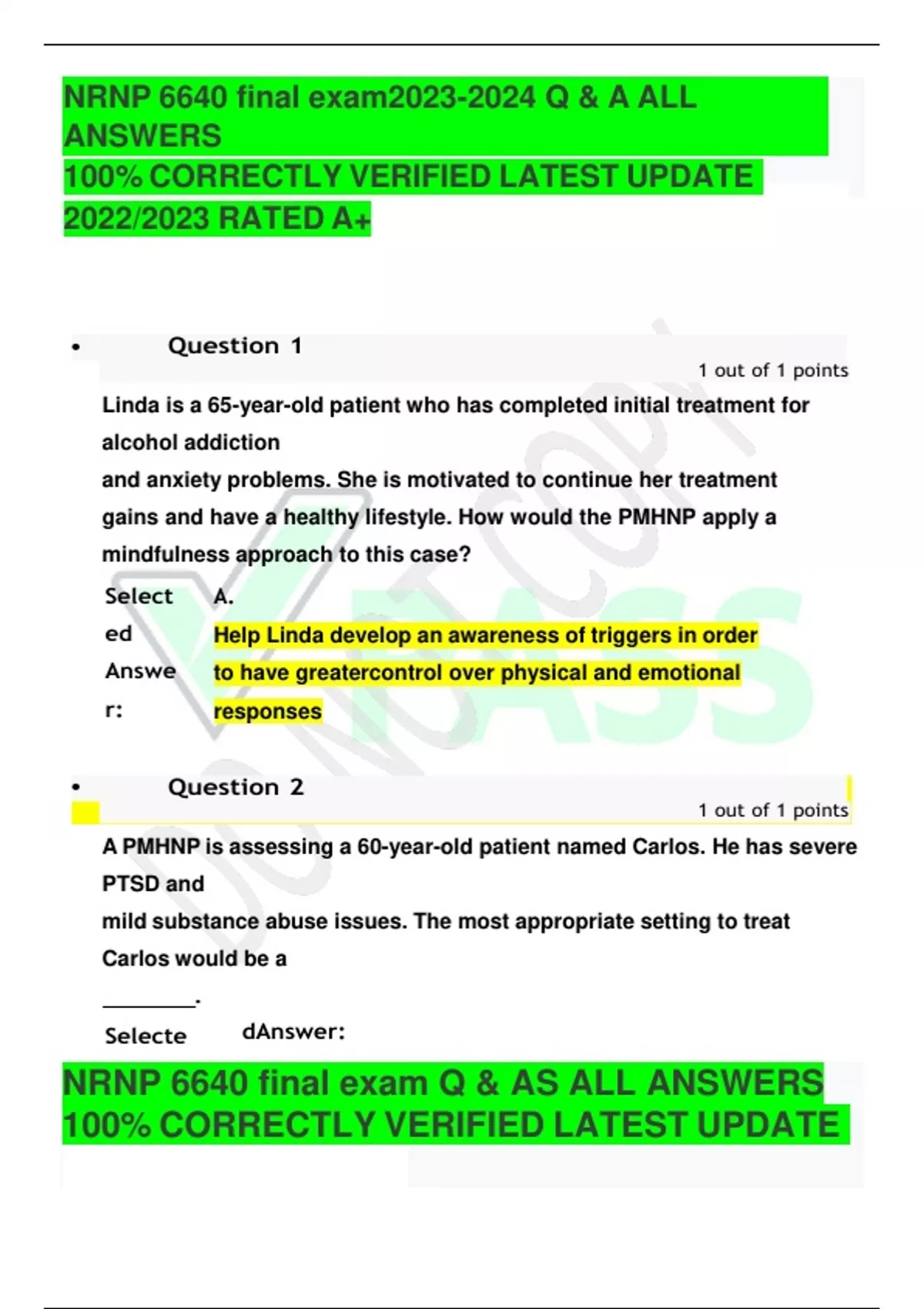 NRNP 6640 final exam Q & A ALL ANSWERS 100% CORRECTLY VERIFIED LATEST UPDATE 2022/2023 RATED A+