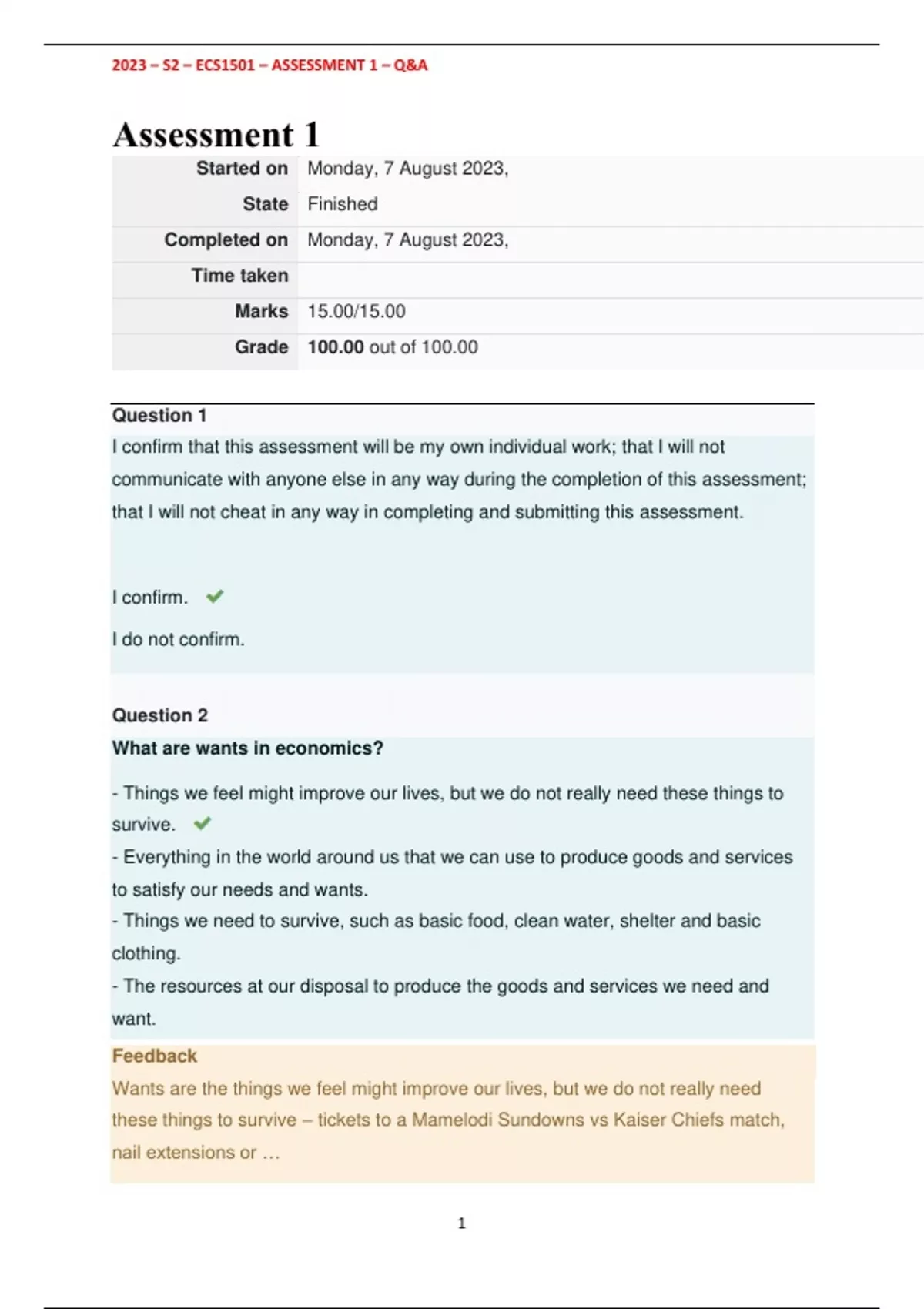 2023 – S2 – ECS1501 – ASSESSMENT 1 – Q&A