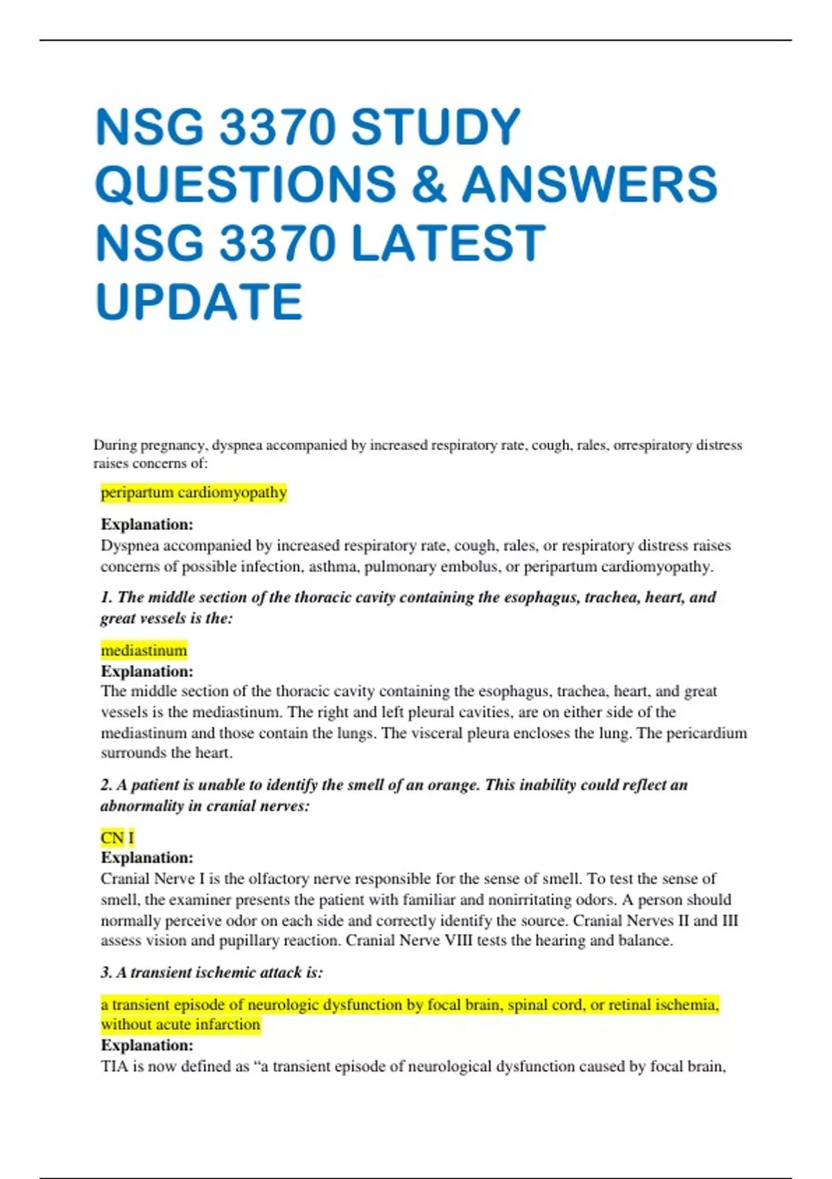 NSG 3370 STUDY QUESTIONS & ANSWERS NSG 3370 LATEST UPDATE