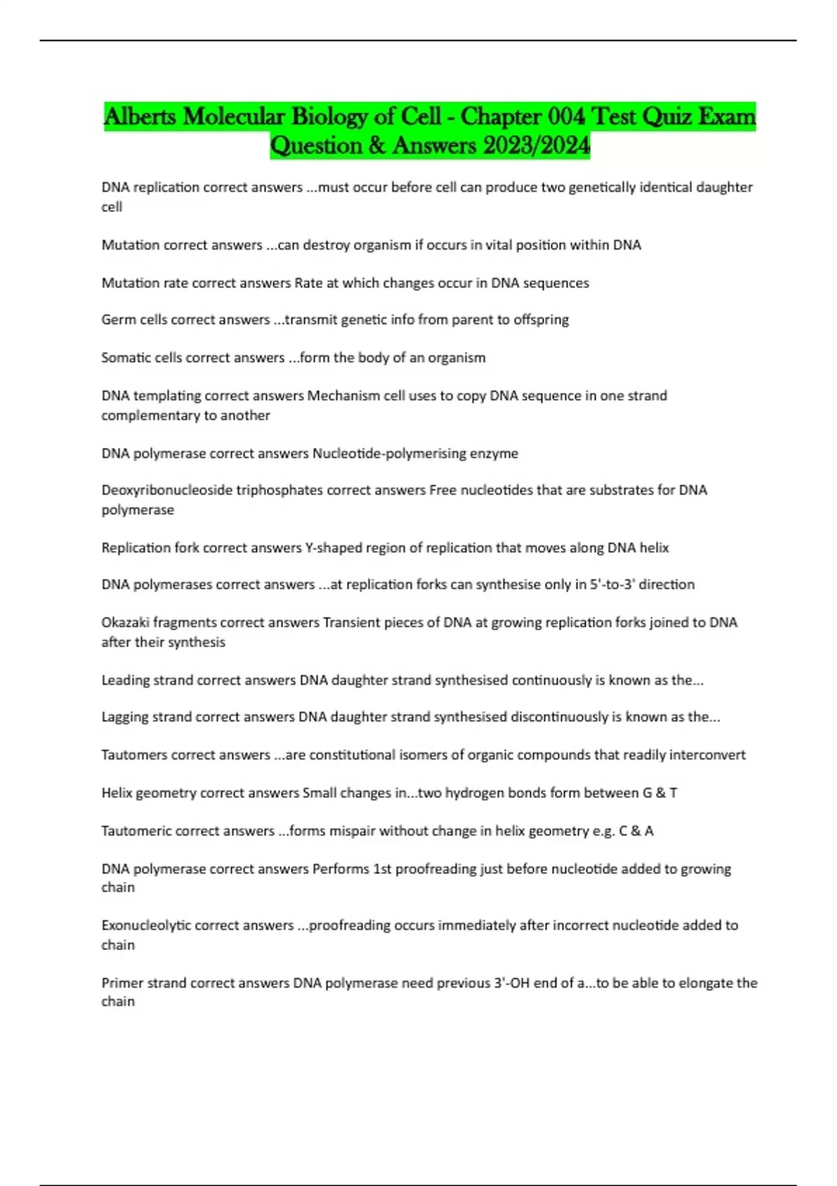 DNA polymerase correct answers Nucleotide-polymerising enzyme