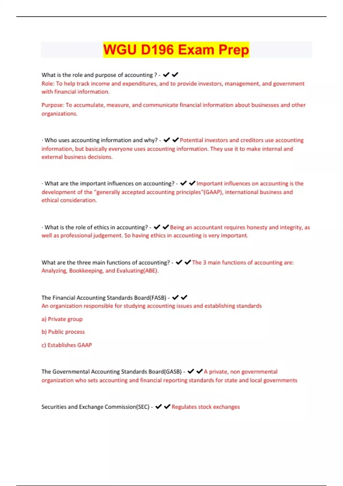 Bundle for WGU D196 Exams Compilation | Verified | Guaranteed Success