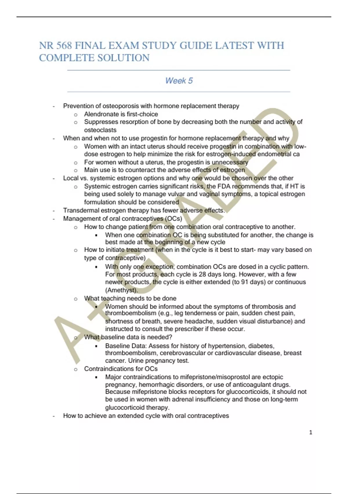1 NR 568 FINAL EXAM STUDY GUIDE LATEST WITH COMPLETE SOLUTION