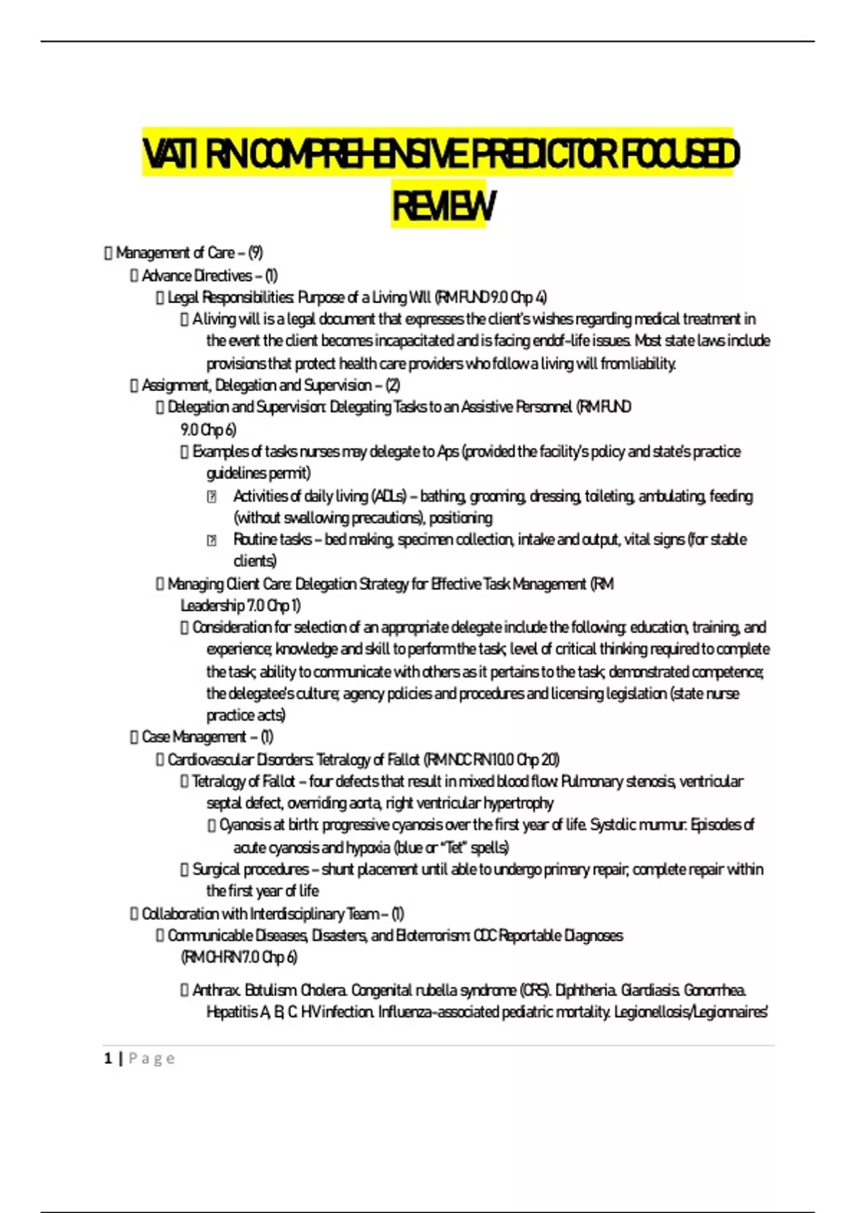 VATI RN COMPREHENSIVE PREDICTOR FOCUSED REVIEW