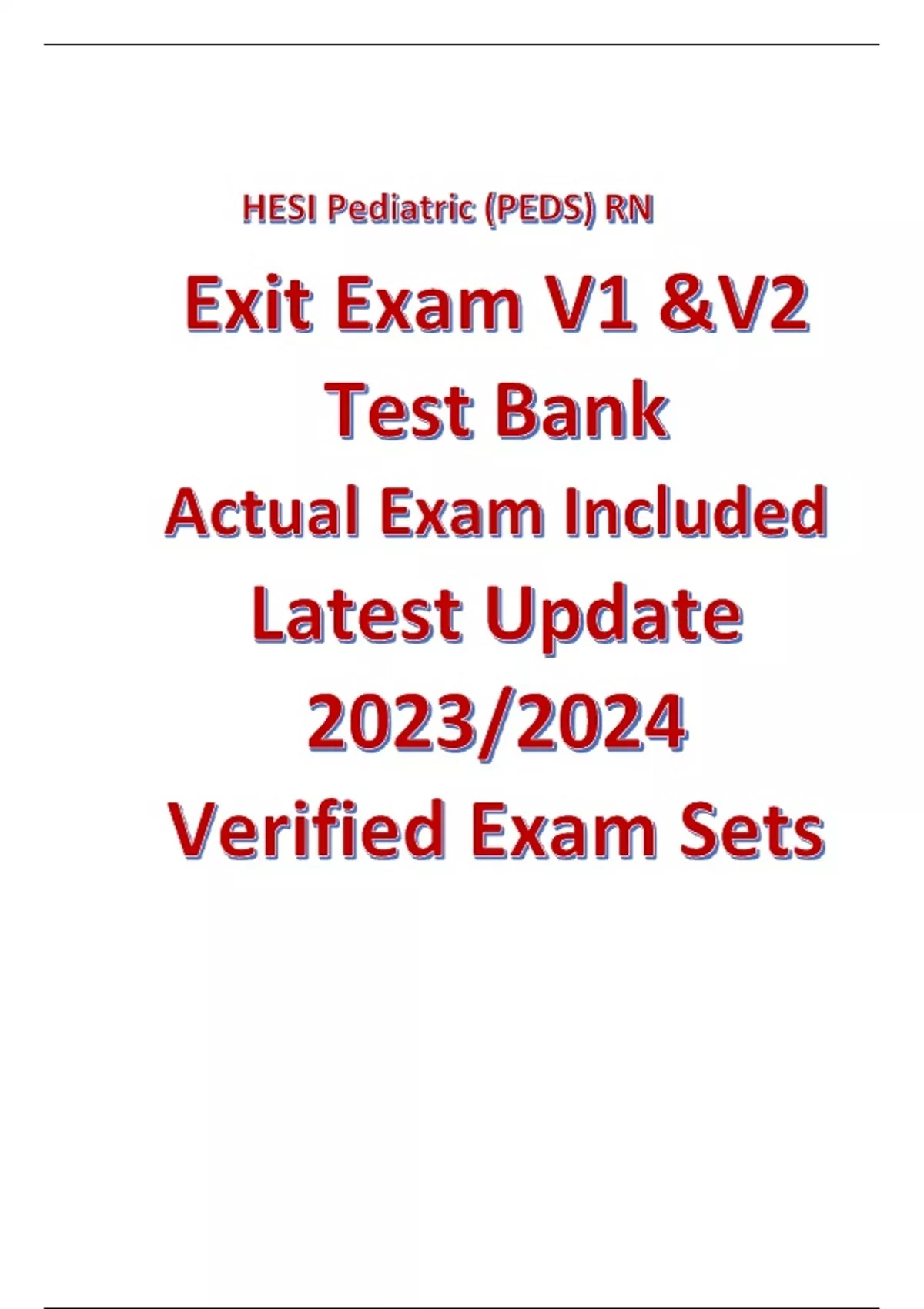 HESI Pediatric (PEDS) RN Exit Exam V1 &V2 Test Bank Actual Exam Included Latest Update Verified Exam Sets