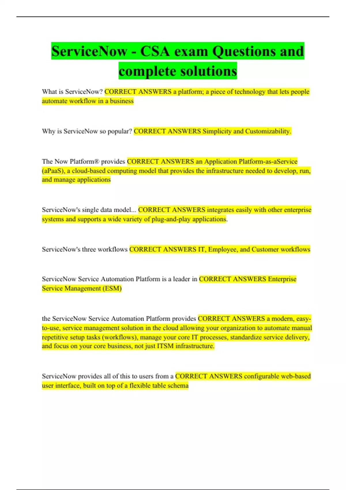 Exam of 5 pages for the course Service now at Service now (ServiceNow)