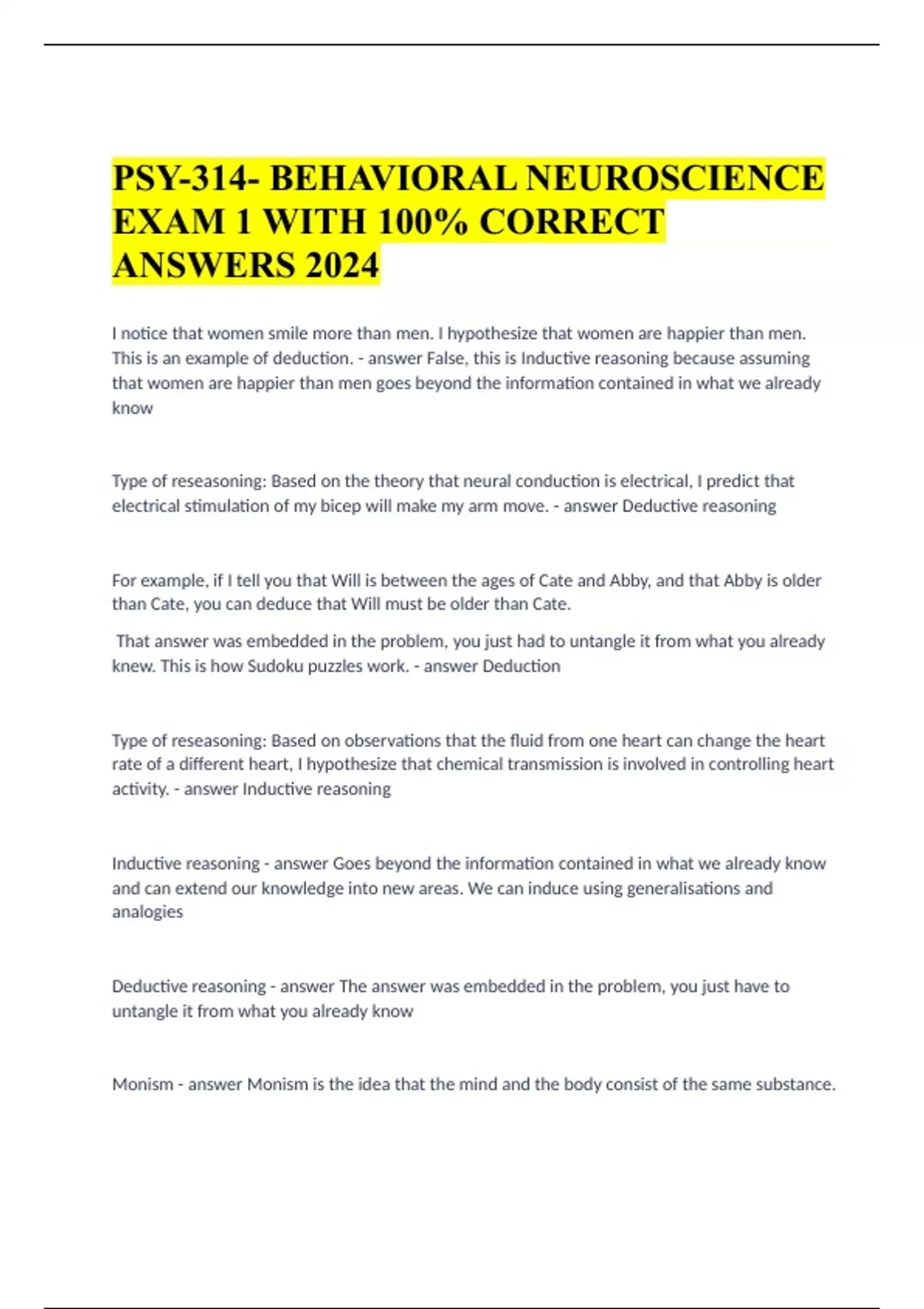 PSY-314- BEHAVIORAL NEUROSCIENCE EXAM 1 WITH 100% CORRECT ANSWERS 2024.