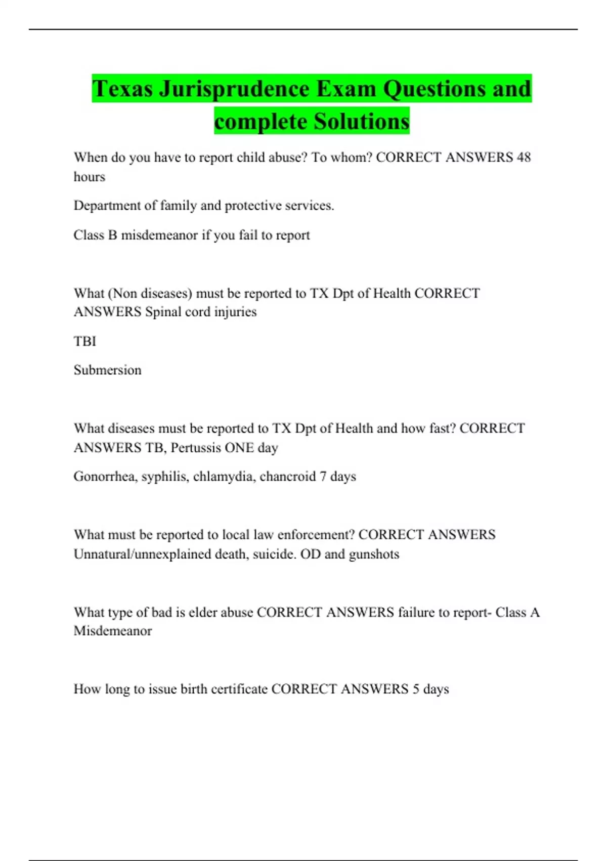 Texas Jurisprudence Exam Questions and complete Solutions