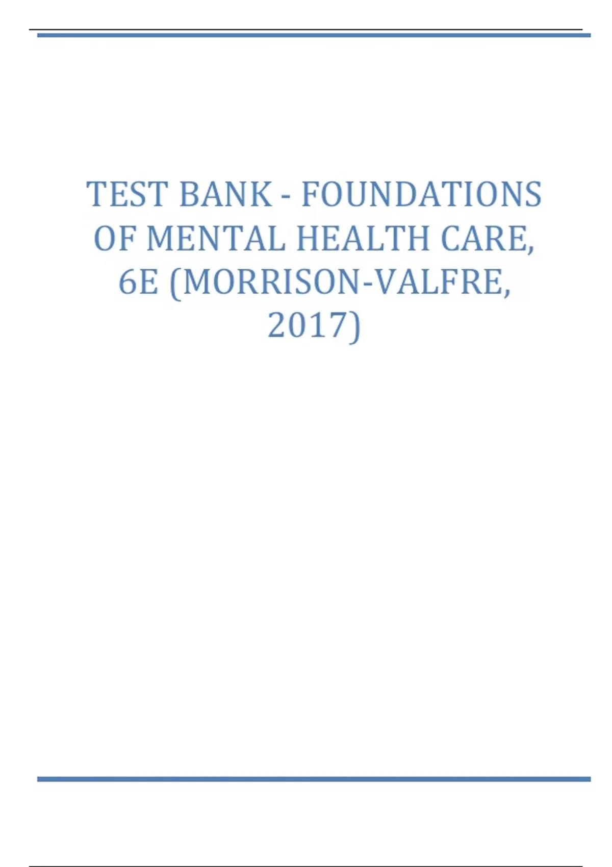 , Test Bank - Foundations of Mental Health Care, 6e (Morrison-Valfre, 2017)