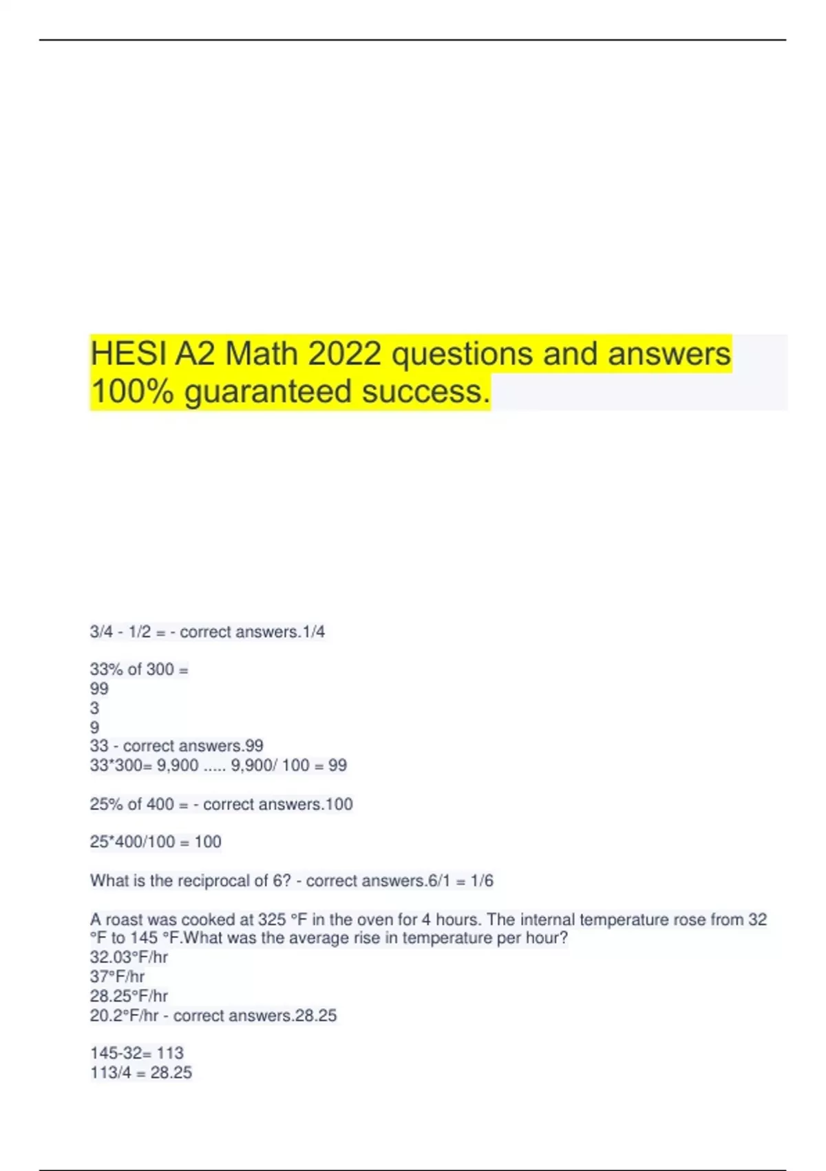 HESI A2 Math 2022 questions and answers 100% guaranteed success.