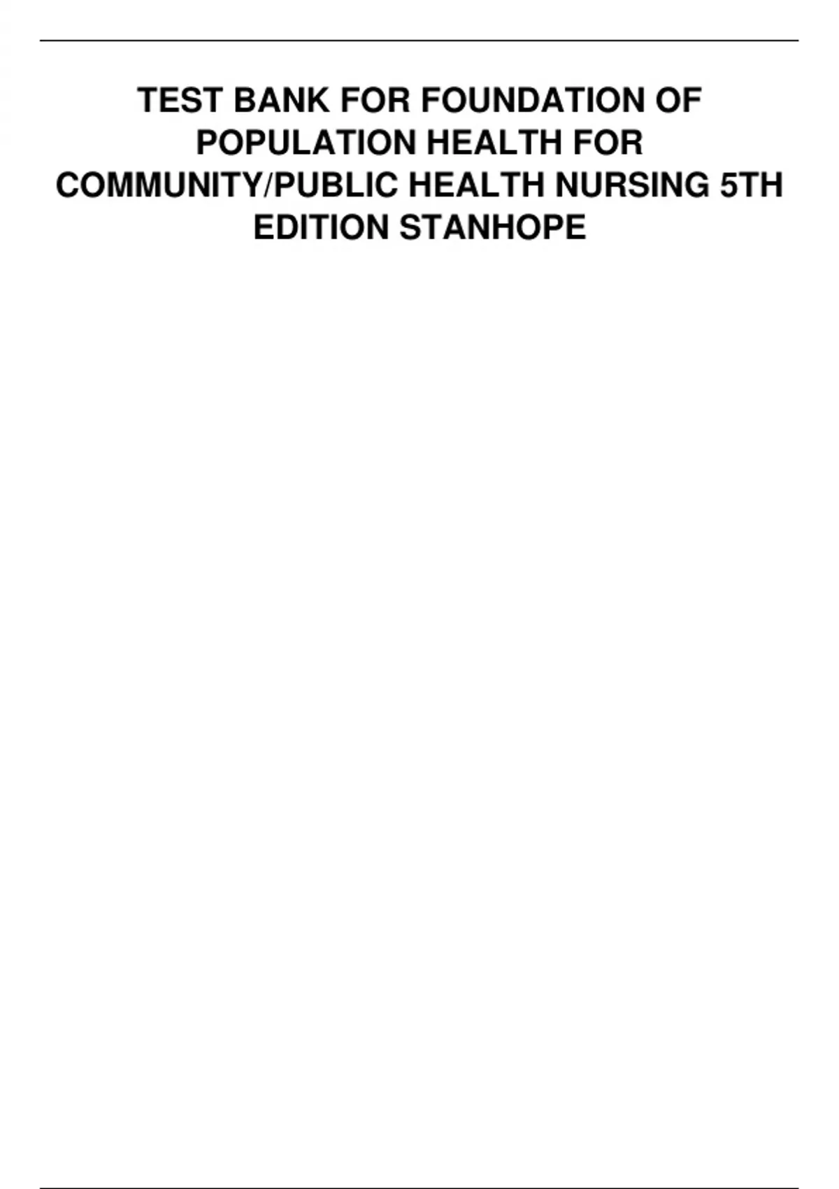 TEST BANK FOR FOUNDATION OF POPULATION HEALTH FOR COMMUNITY/PUBLIC HEALTH NURSING 5TH EDITION STANHOPE