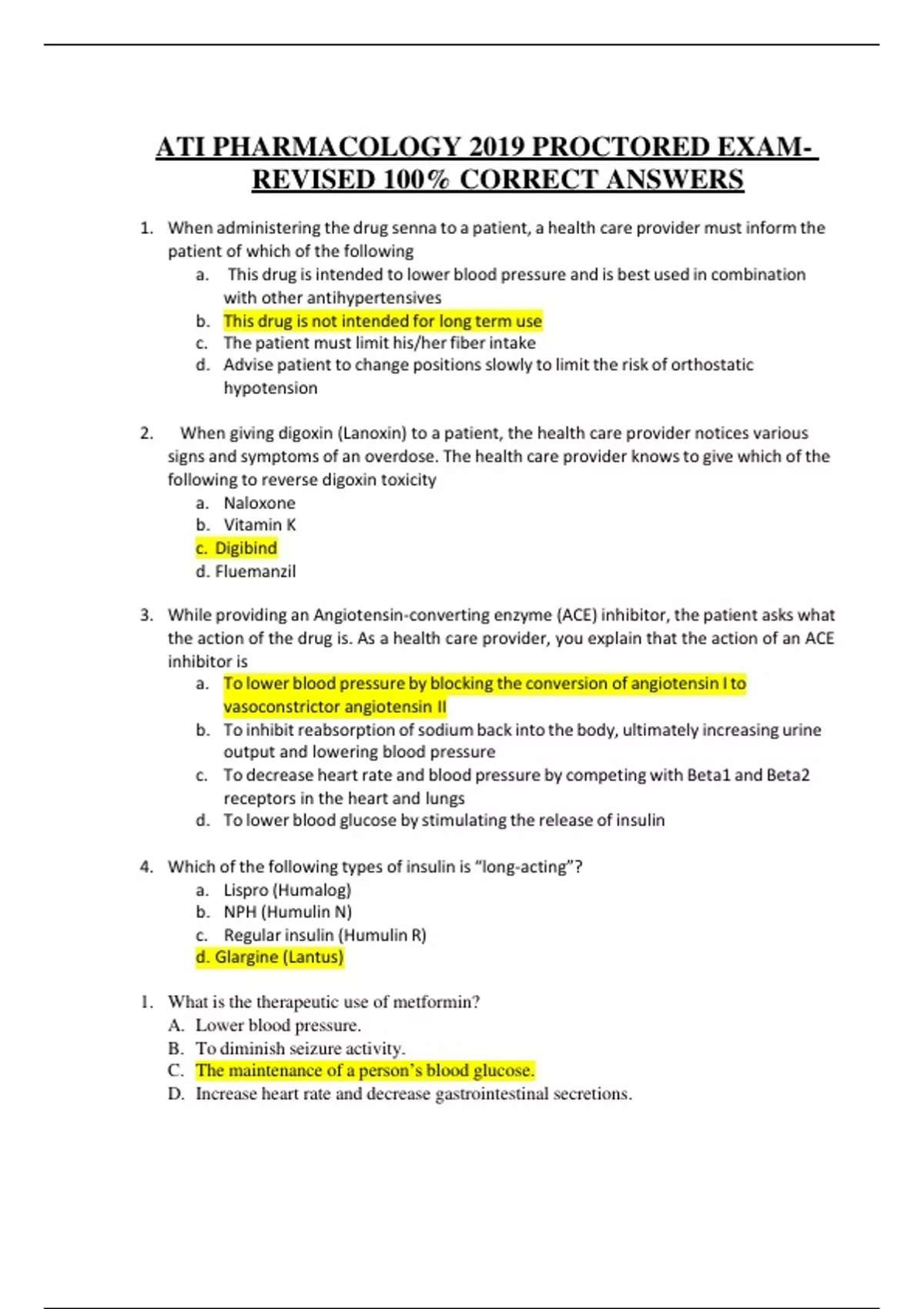 ATI PHARMACOLOGY 2019 PROCTORED EXAM- REVISED 100% CORRECT ANSWERS