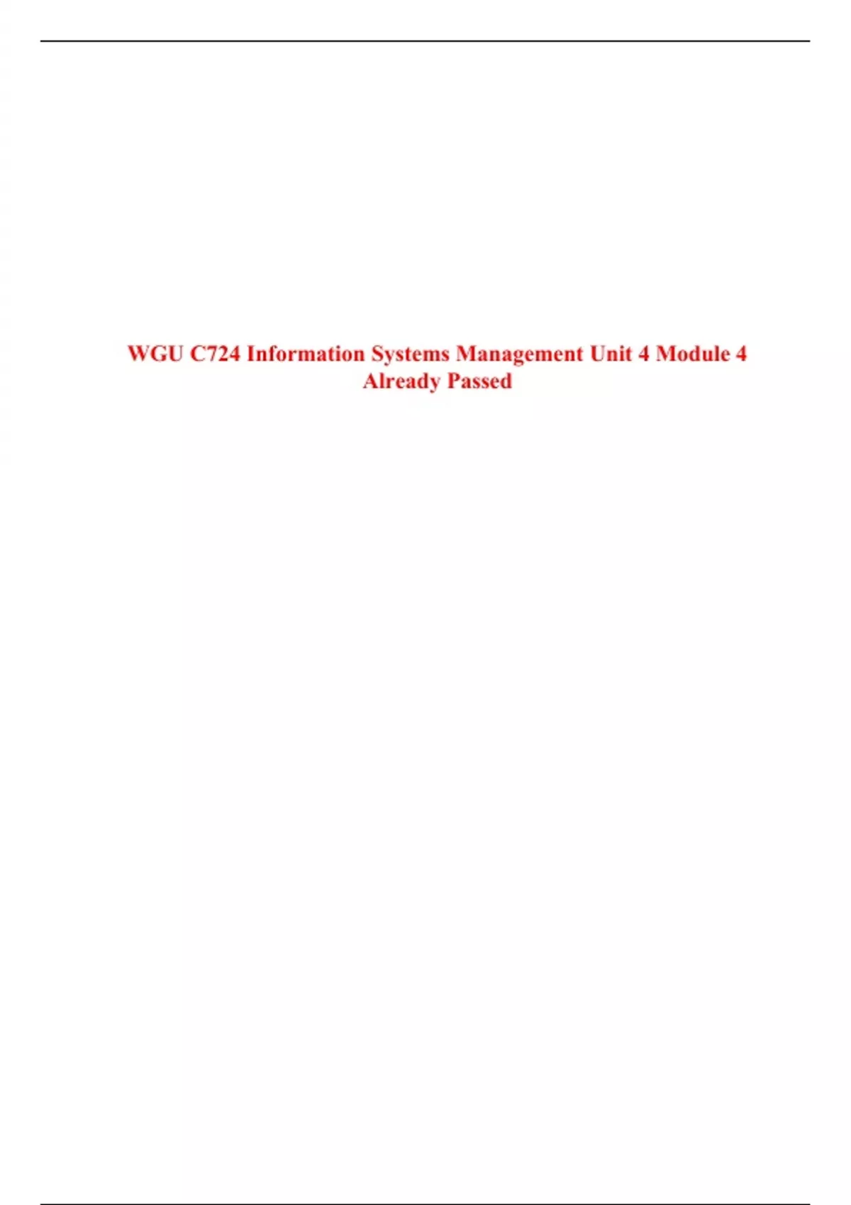 WGU C724 Information Systems Management Unit 4 Module 4 Already Passed