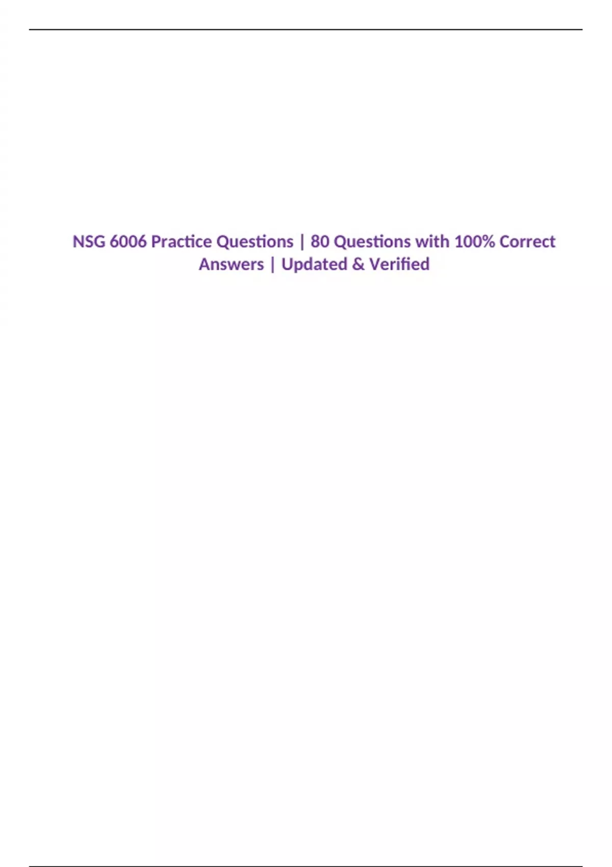 NSG 6006 Practice Questions | 80 Questions with 100% Correct Answers | Updated & Verified