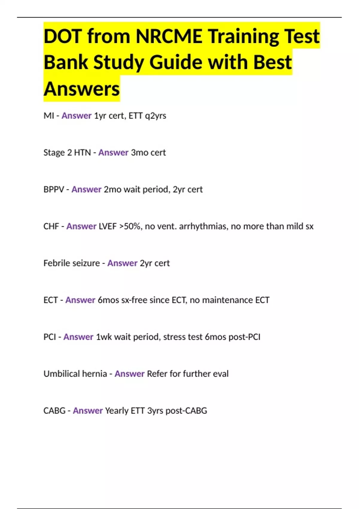 DOT from NRCME Training Test Bank Study Guide with Best Answers