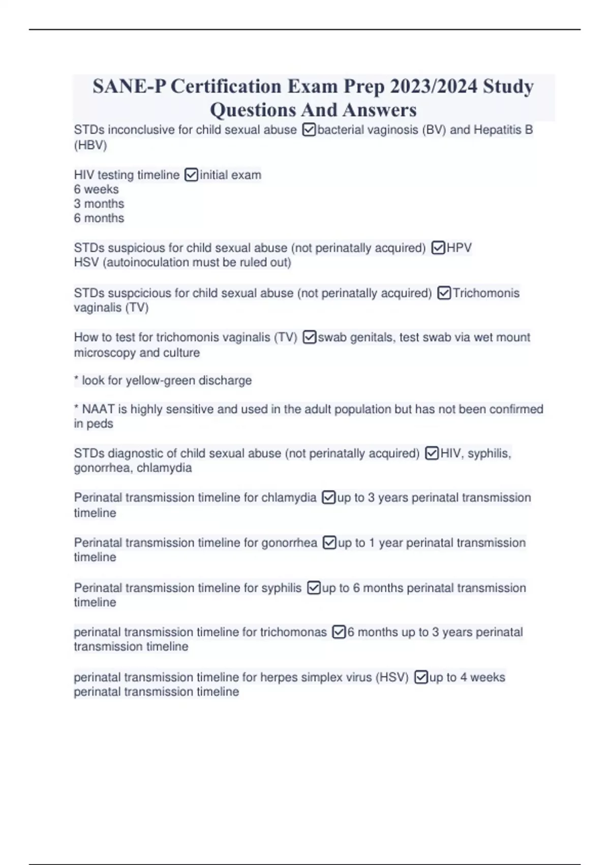 SANE-P Certification Exam Prep 2023/2024 Study Questions And Answers SANE-P Certification Exam Prep 2023/2024 Study Questions And Answers