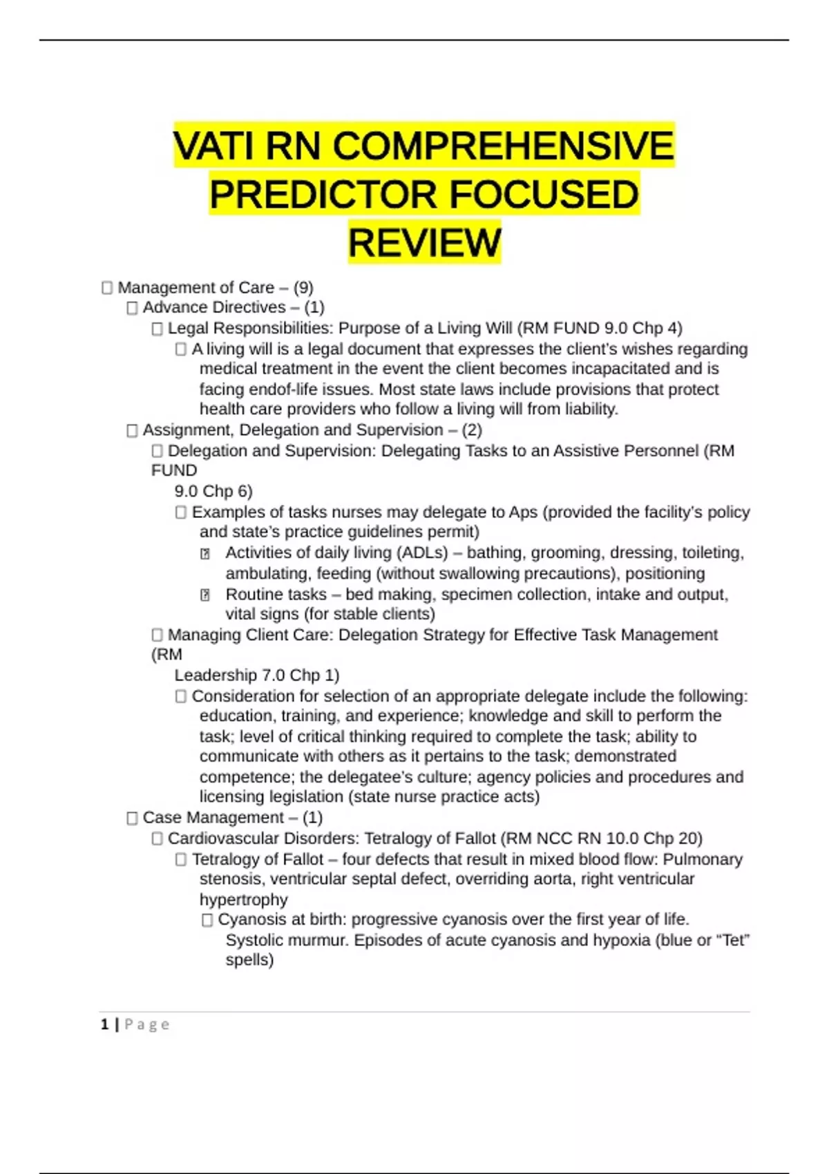 VATI RN COMPREHENSIVE PREDICTOR FOCUSED REVIEW