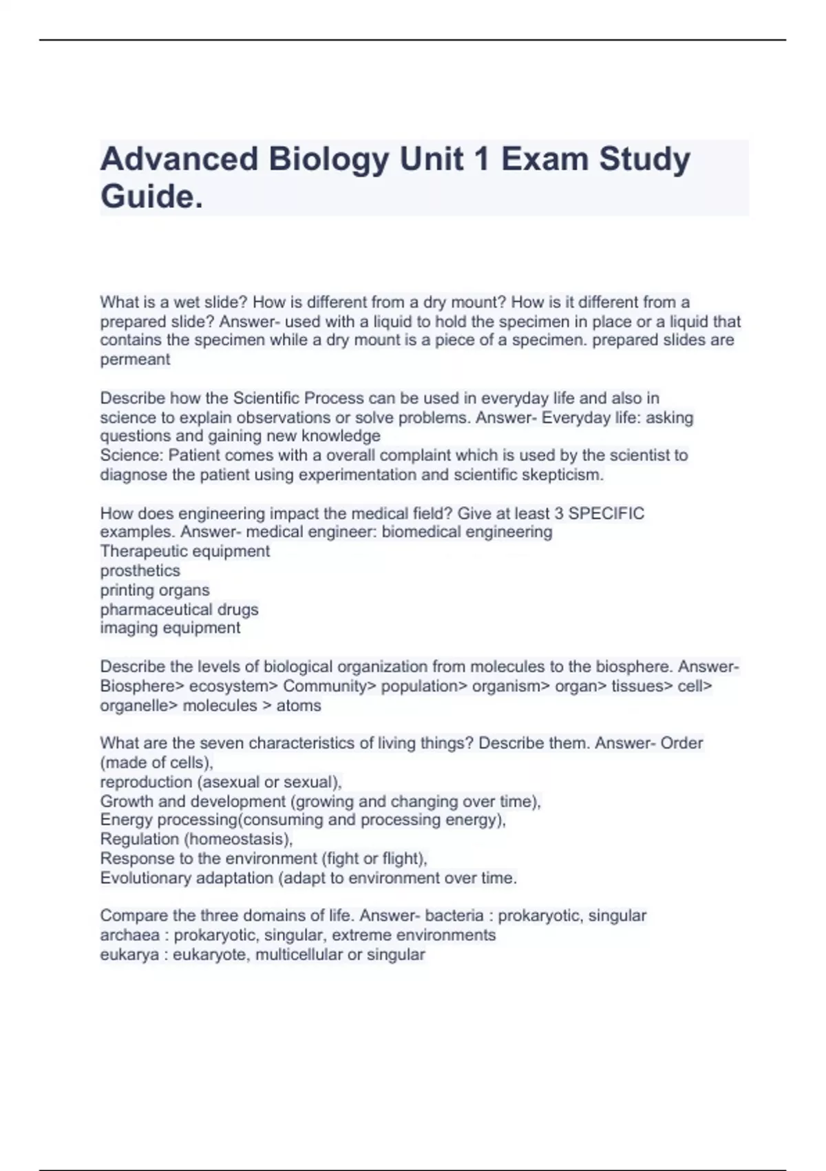 ADVANCED BIOLOGY EXAM PACKAGE DEAL.