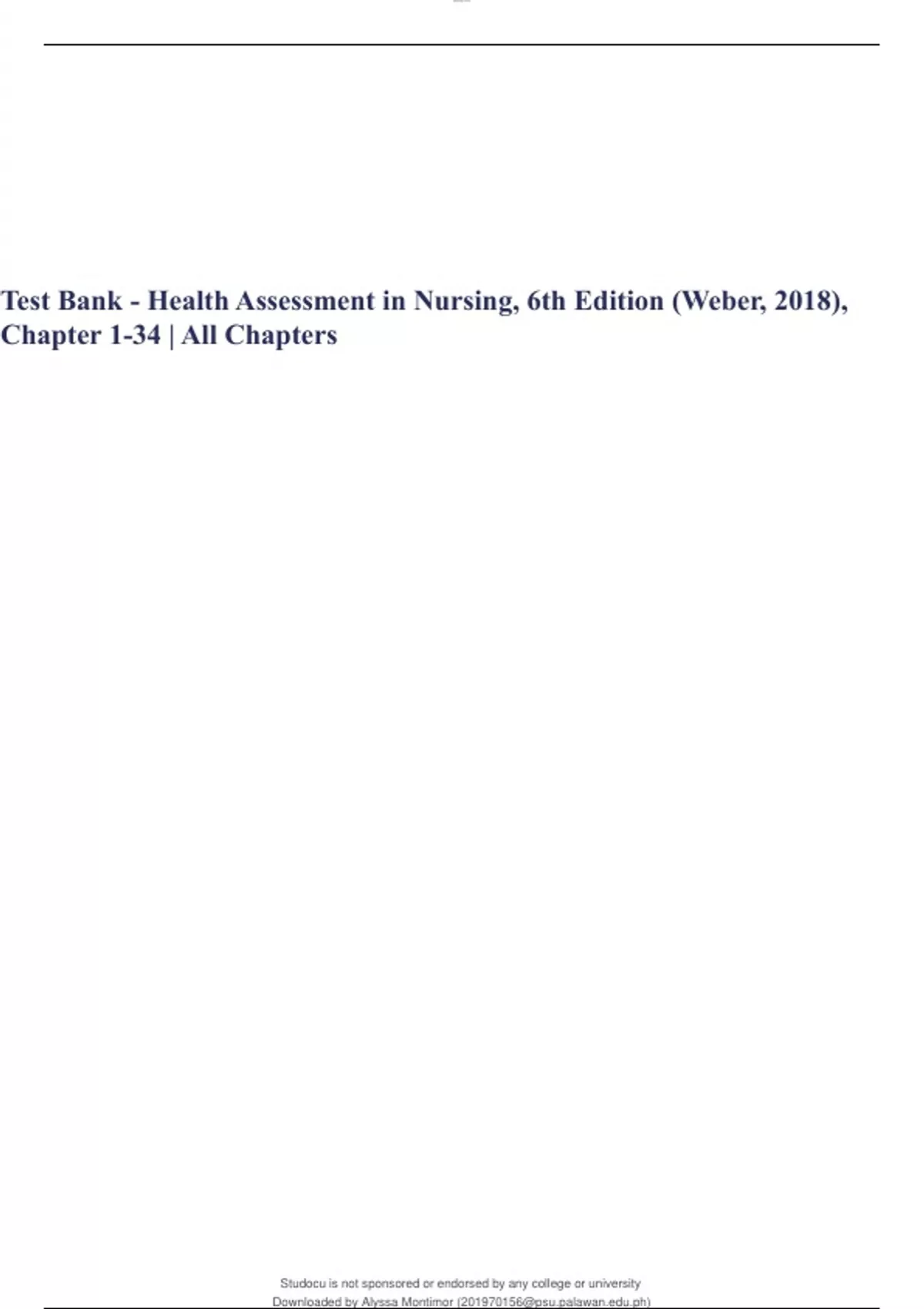 Test Bank - Health Assessment in Nursing, 6th Edition (Weber, 2018),