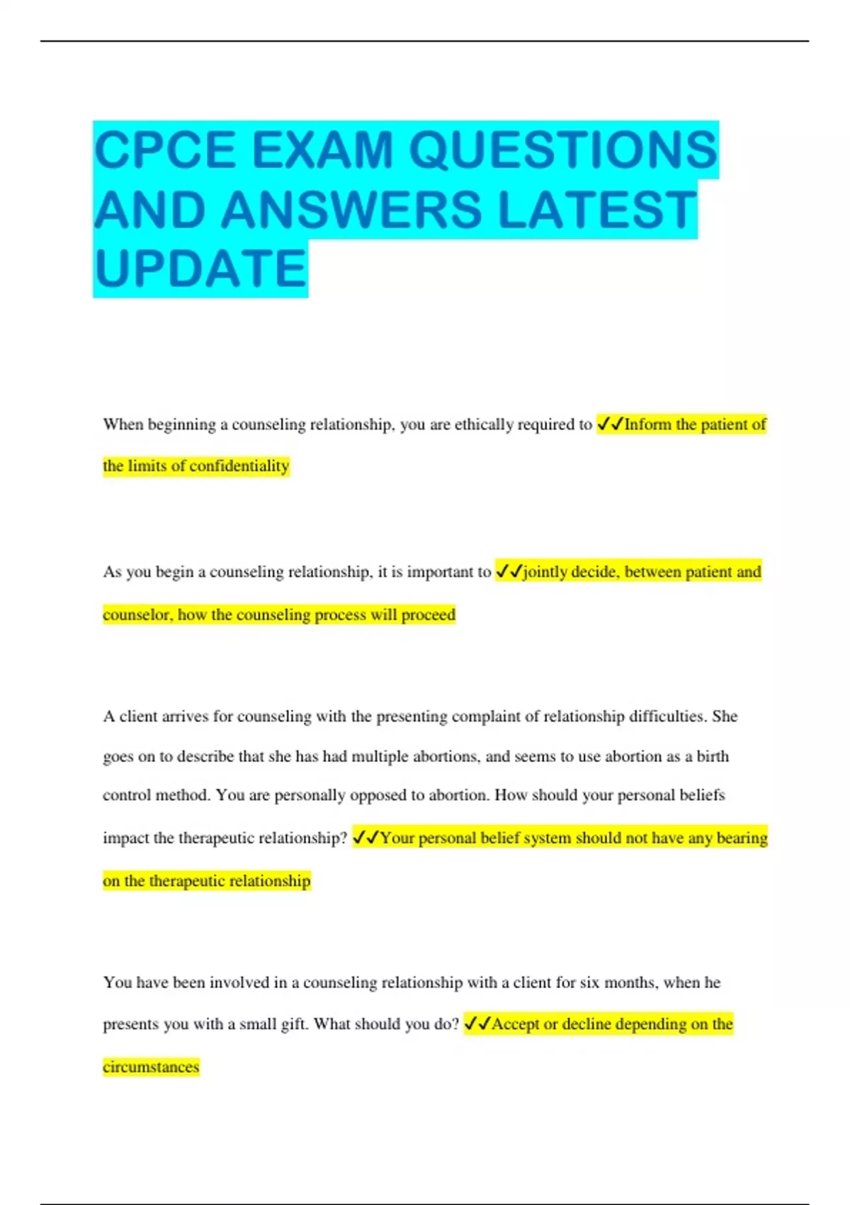 CPCE EXAM QUESTIONS AND ANSWERS LATEST UPDATE