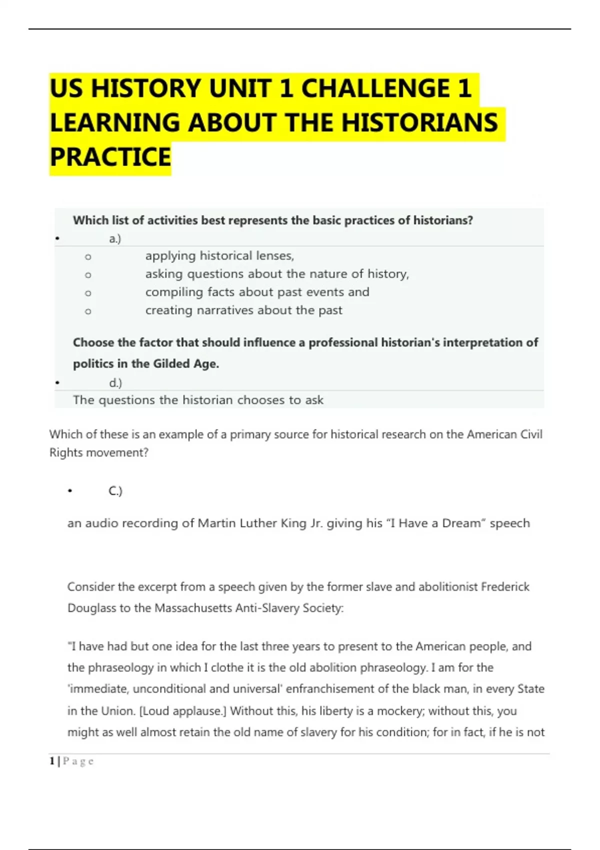 US HISTORY UNIT 1 CHALLENGE 1 LEARNING ABOUT THE HISTORIANS PRACTICE