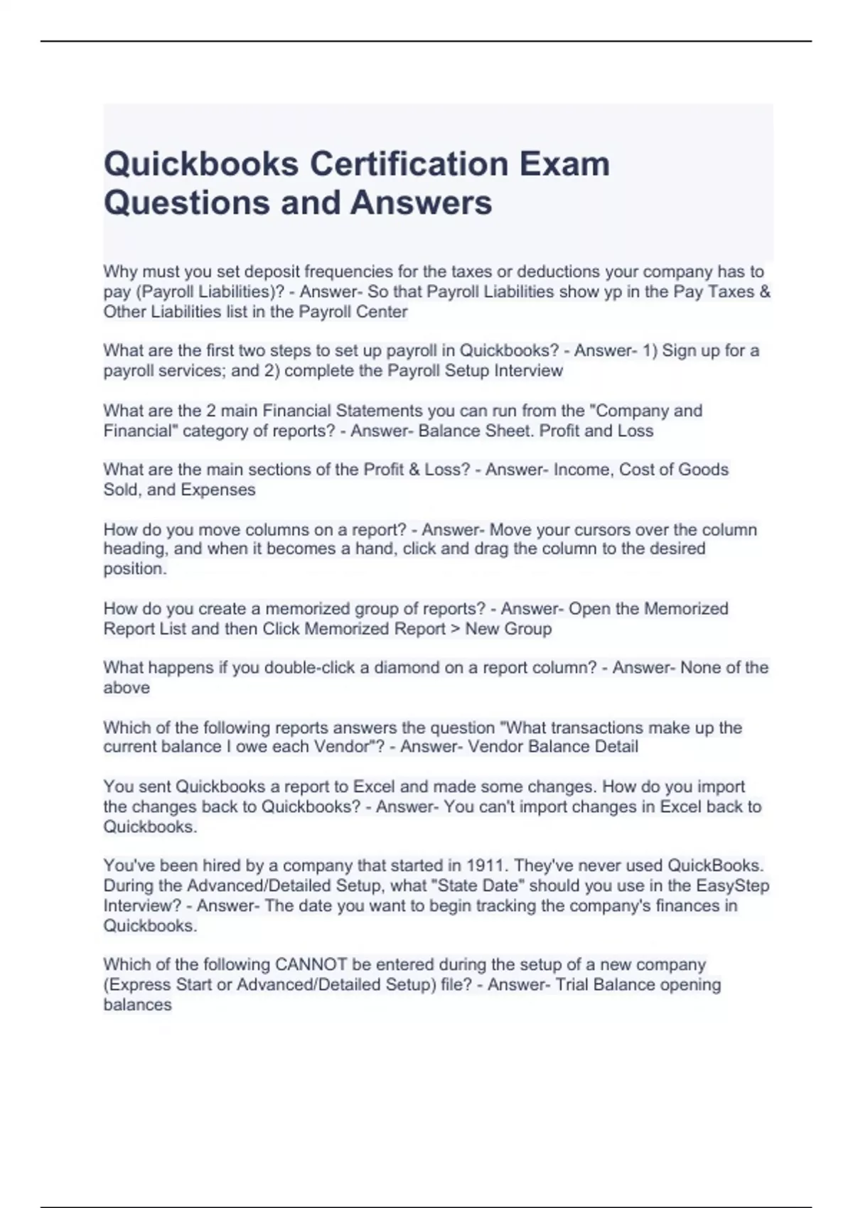 Quickbooks Certification Exam Questions and Answers | Graded A