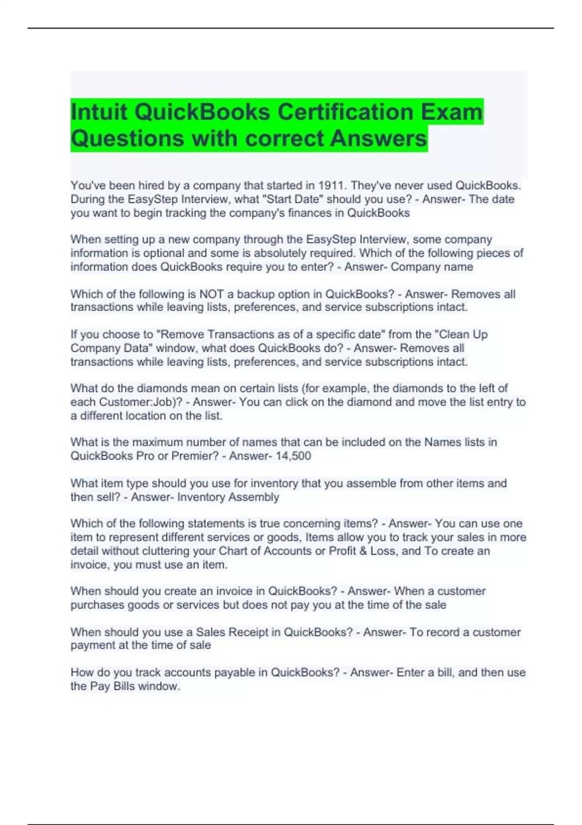 Intuit QuickBooks Certification Exam Questions with correct Answers
