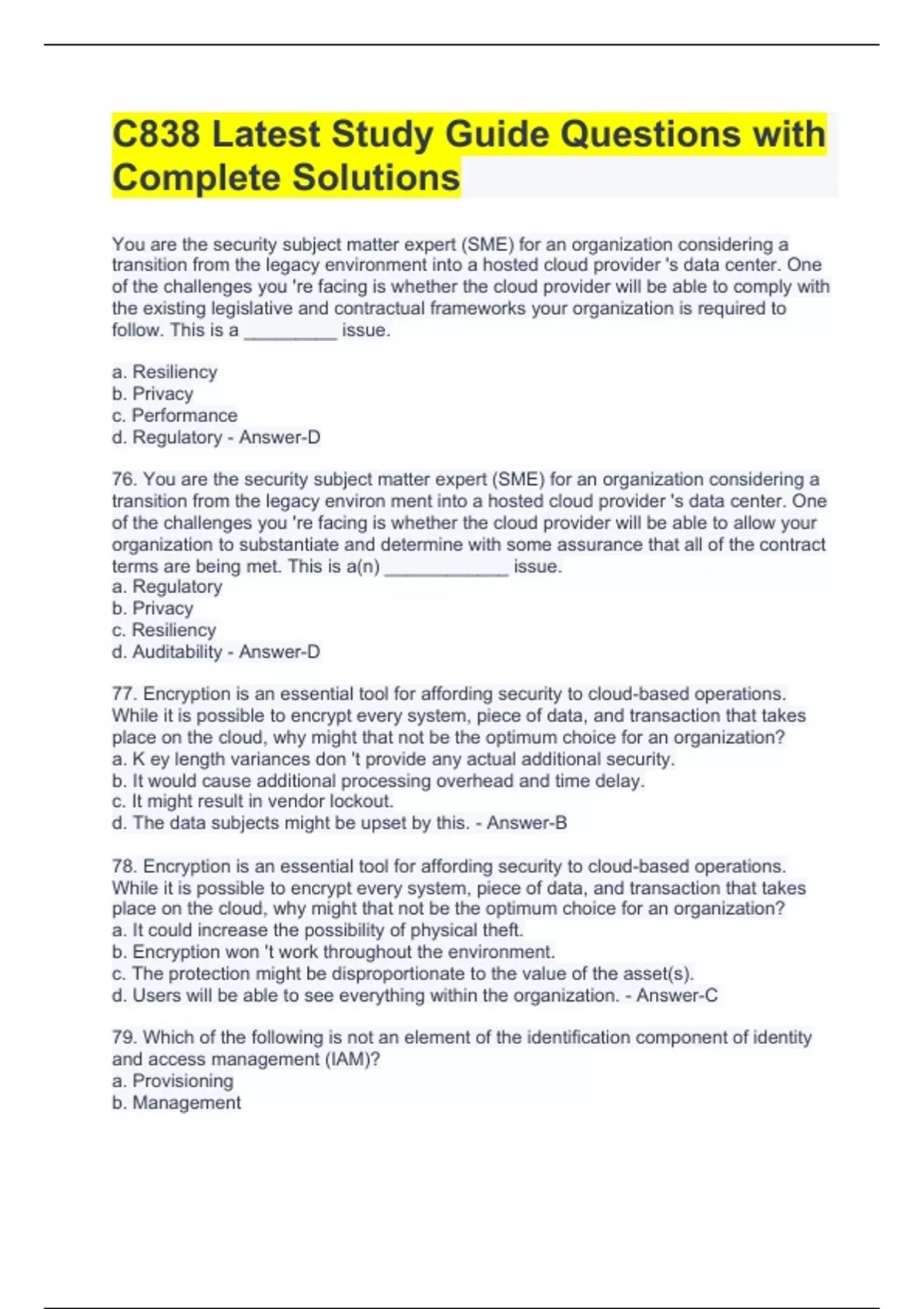 C838 Latest Study Guide Questions with Complete Solutions