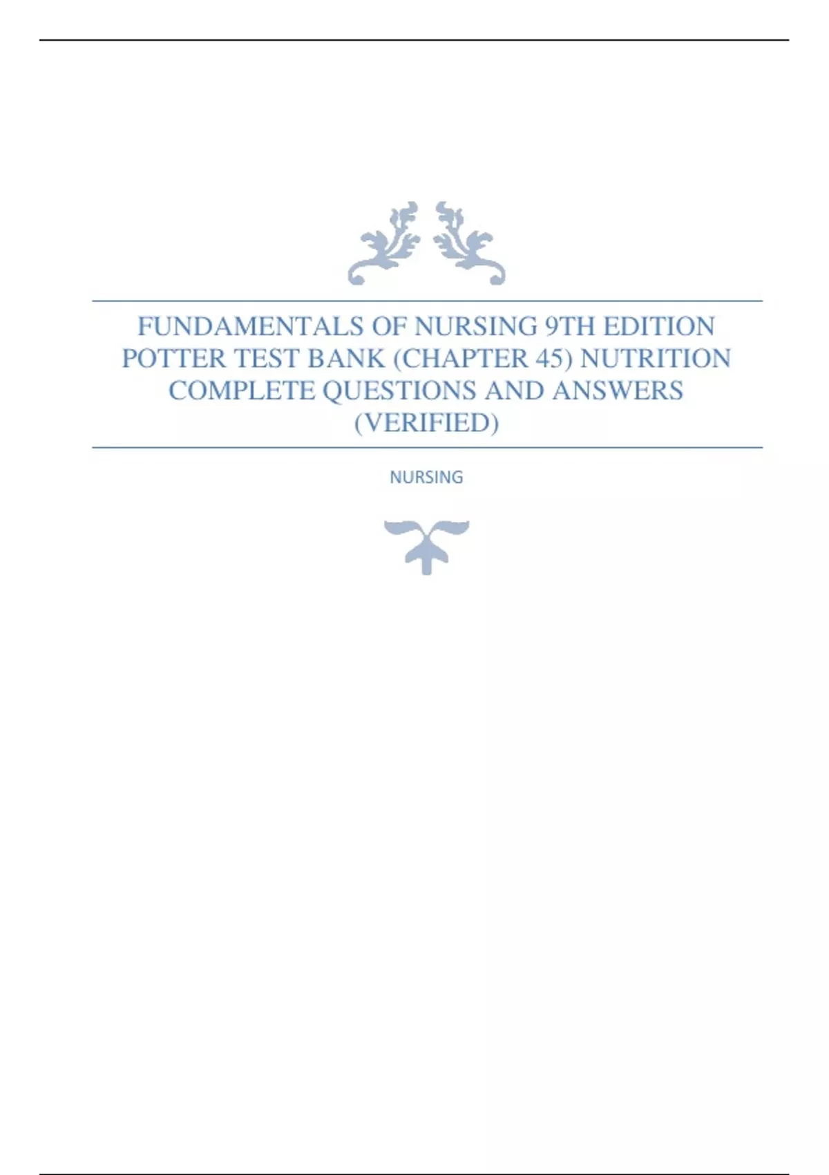 FUNDAMENTALS OF NURSING 9TH EDITION POTTER TEST BANK (CHAPTER 45) NUTRITION COMPLETE QUESTIONS AND ANSWERS (VERIFIED)