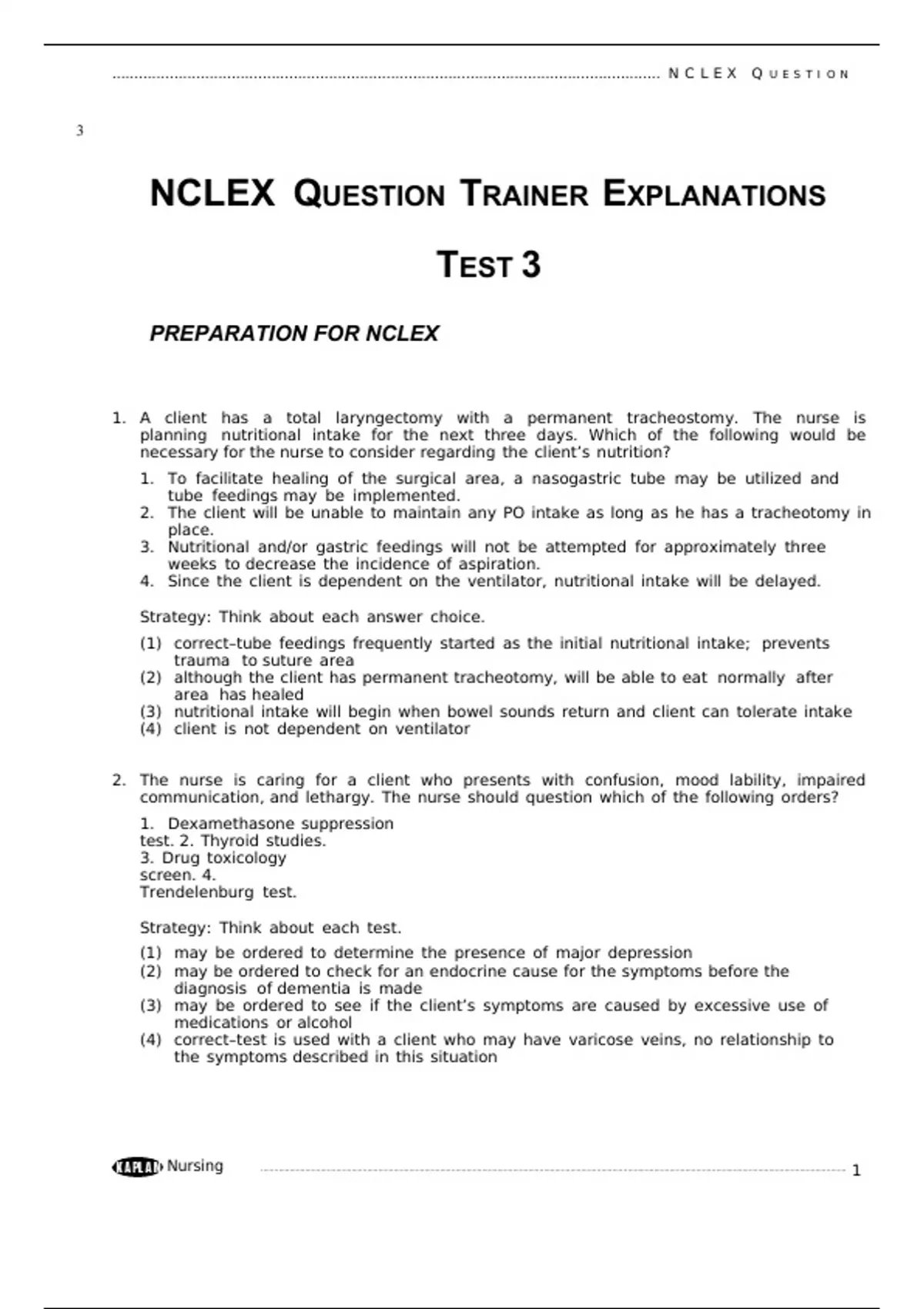NCLEX QUESTION TRAINER EXPLANATIONS TEST 3