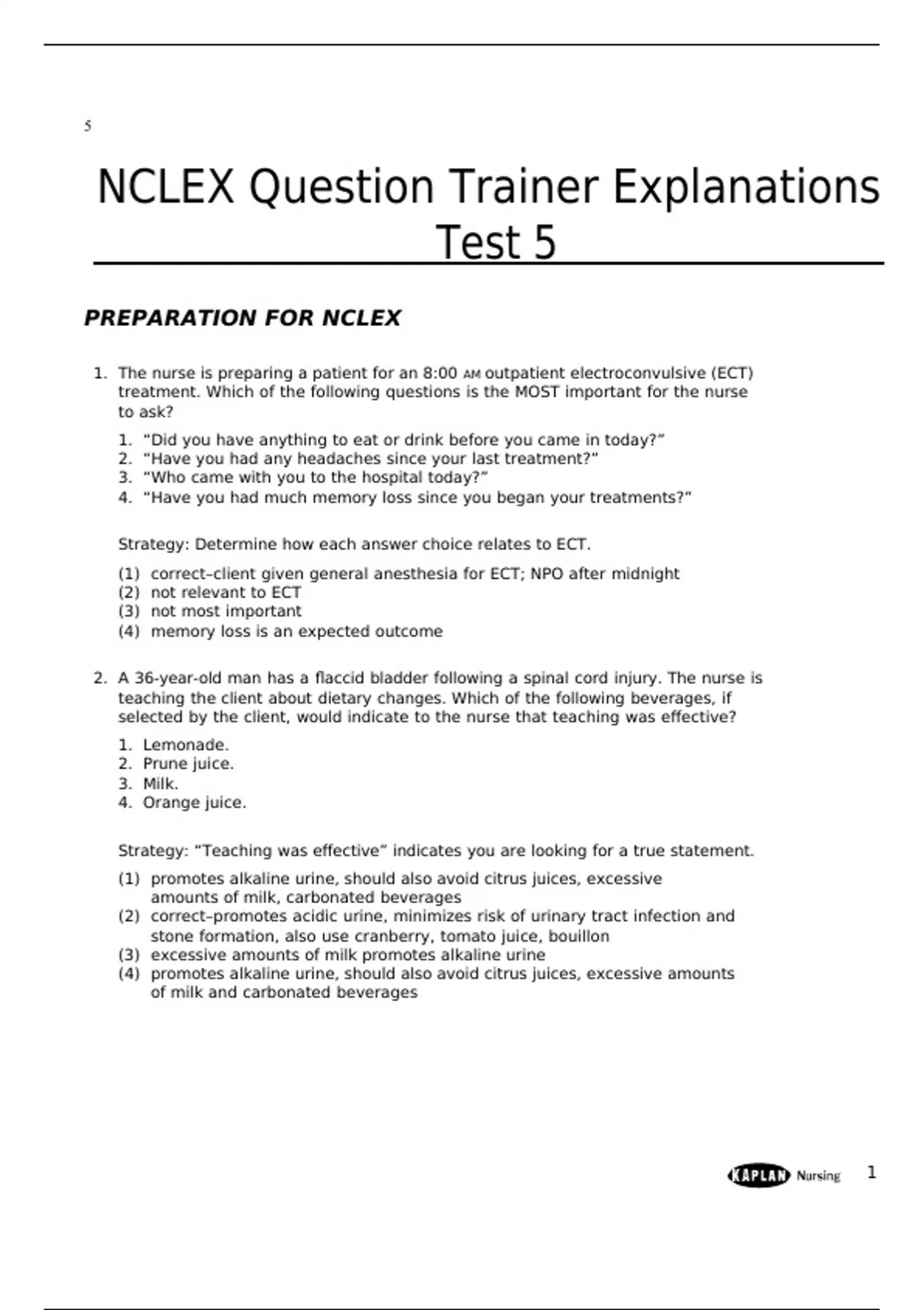 NCLEX Question Trainer Explanations Test 5