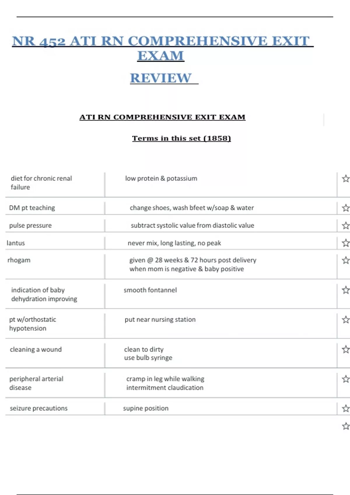 NR 452 ATI RN COMPREHENSIVE EXIT EXAM REVIEW