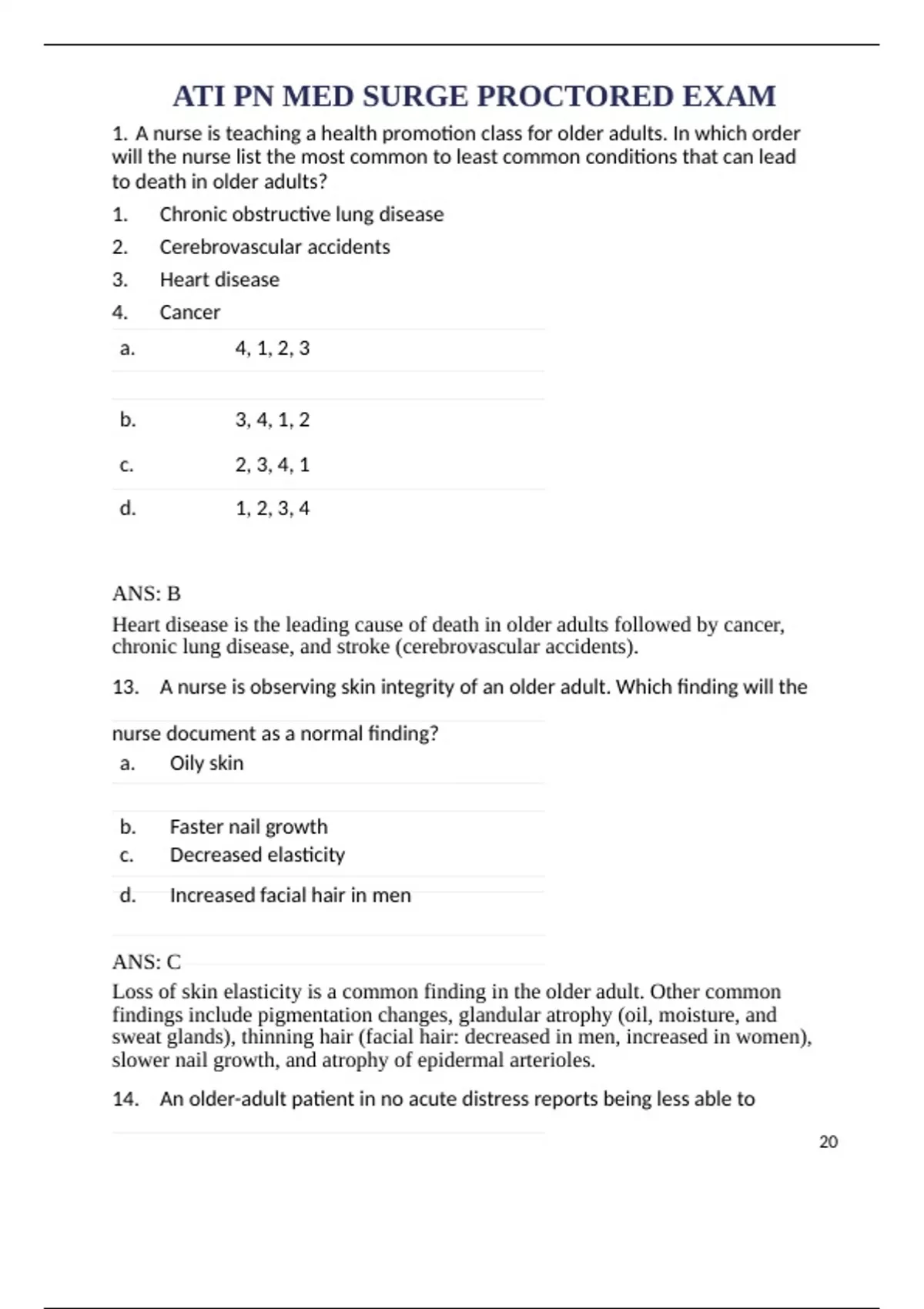 14. An older-adult patient in no acute distress reports being less able to
