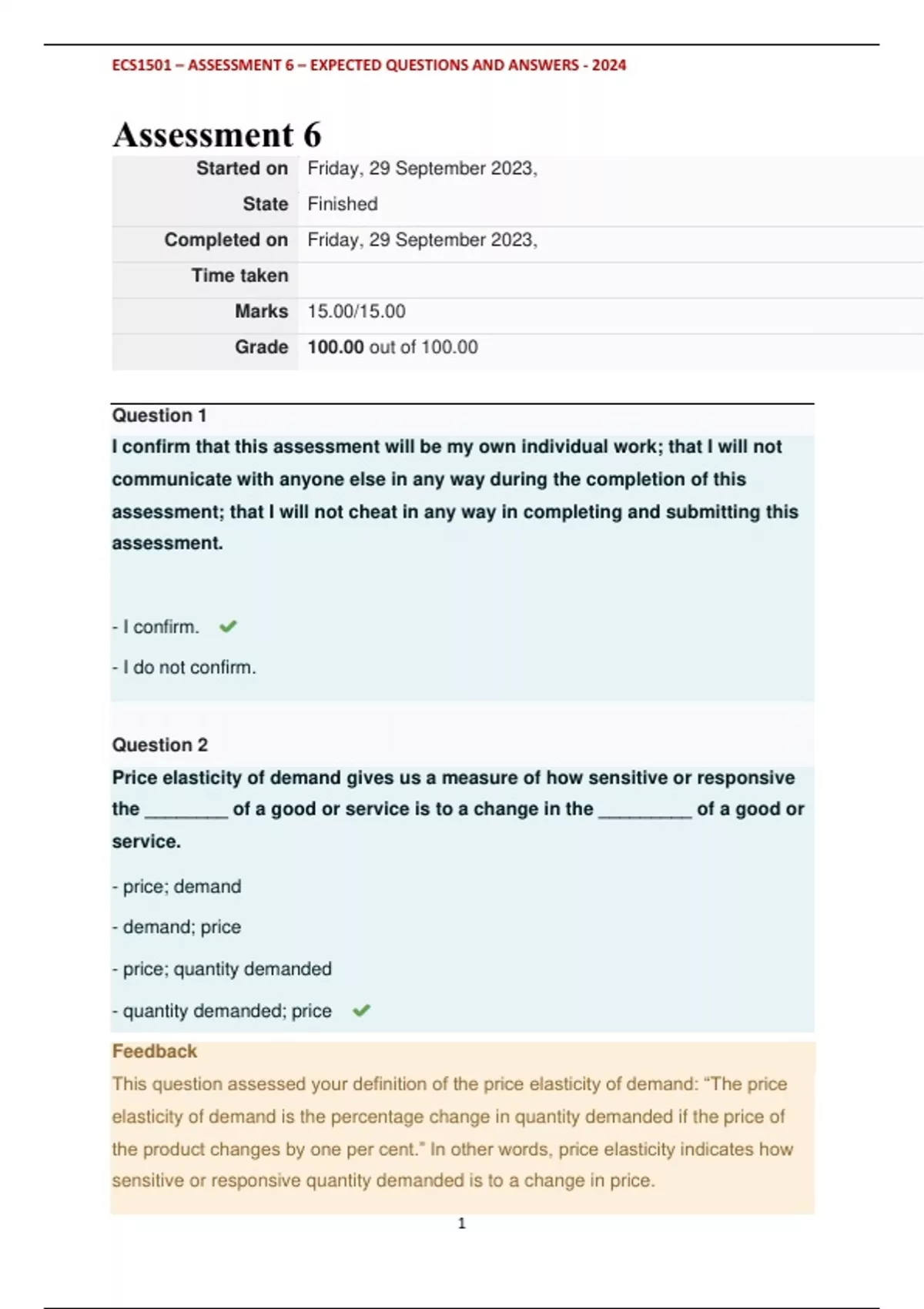 , ECS1501 – ASSESSMENT 6 – EXPECTED QUESTIONS AND ANSWERS - 2024