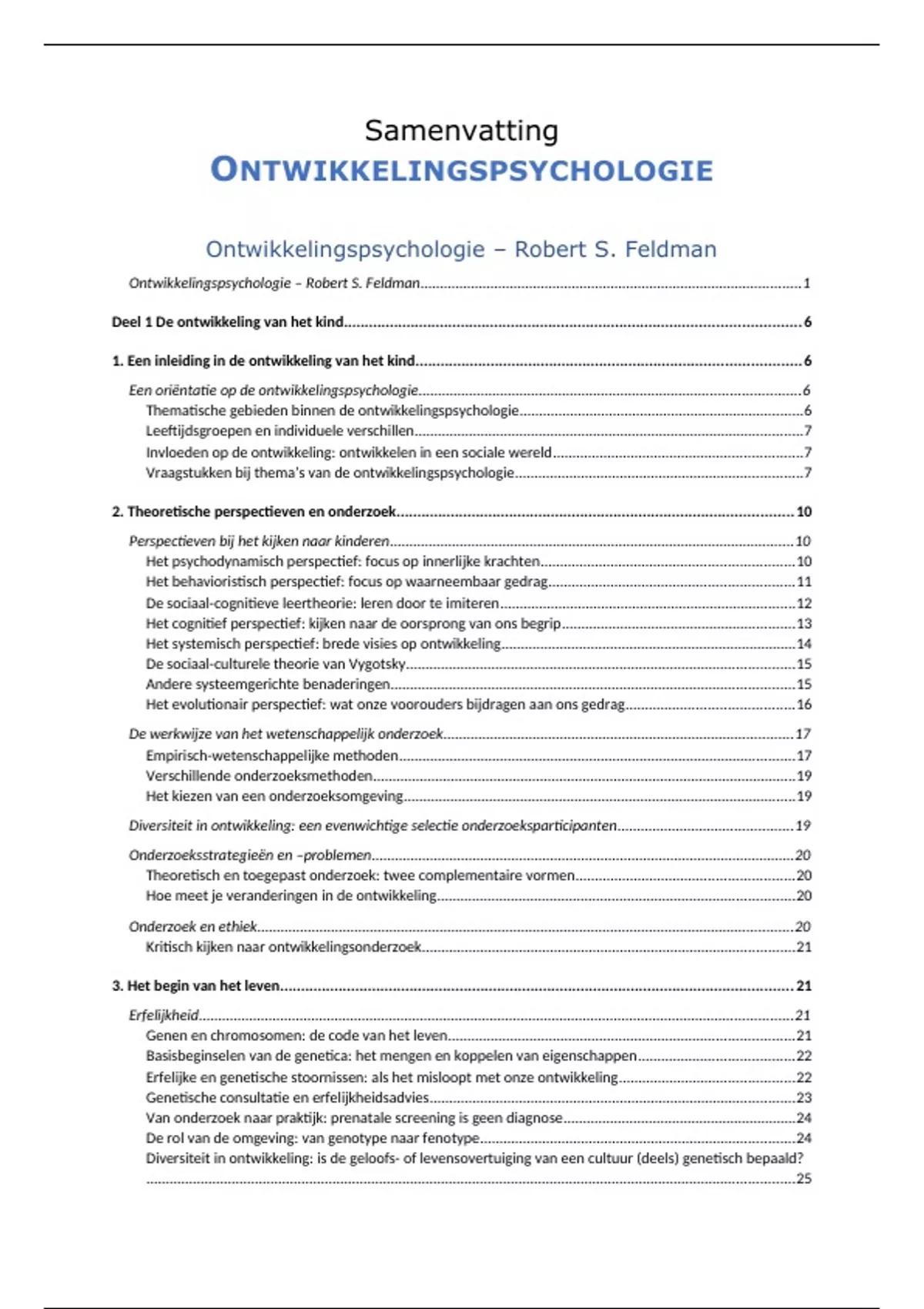 Uitgebreide samenvatting Ontwikkelingspsychologie