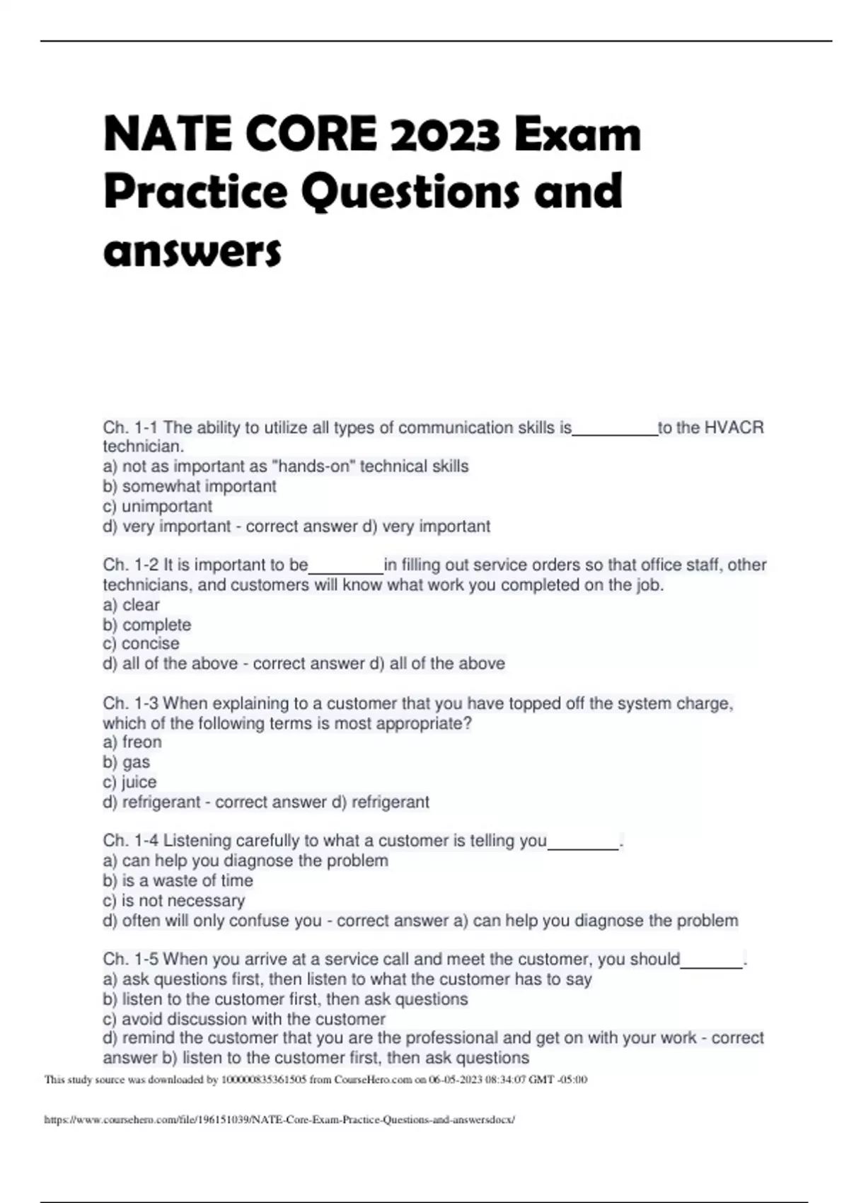 nate core 2023 exam practice questions and answers