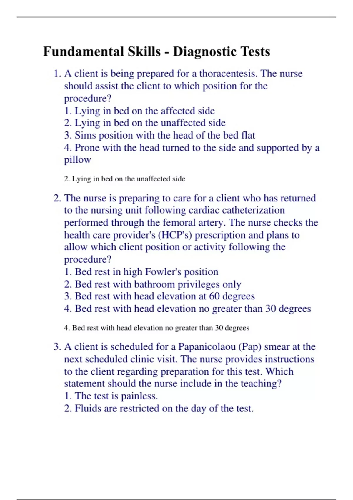Fundamental Skills - Diagnostic Tests