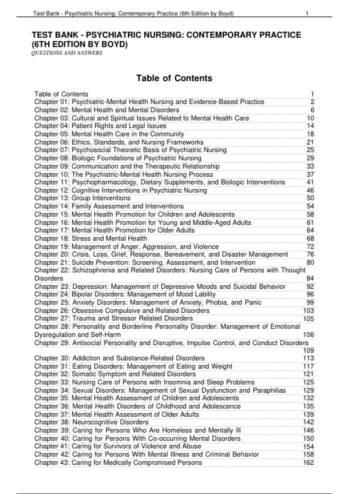 TEST BANK - PSYCHIATRIC NURSING: CONTEMPORARY PRACTICE (6TH EDITION BY BOYD) QUESTIONS AND ANSWERS