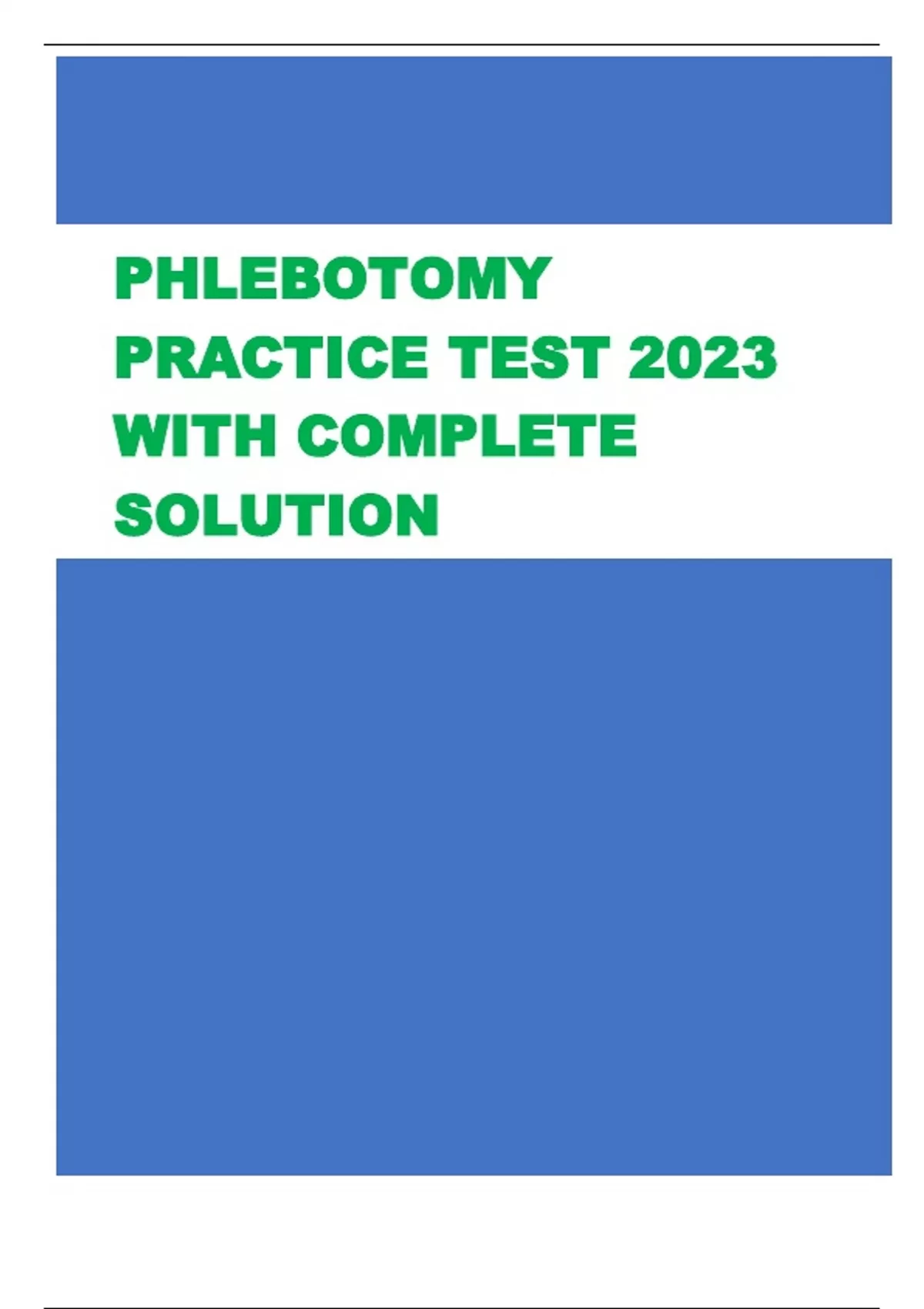 PHLEBOTOMY PRACTICE TEST 2023 WITH COMPLETE SOLUTION