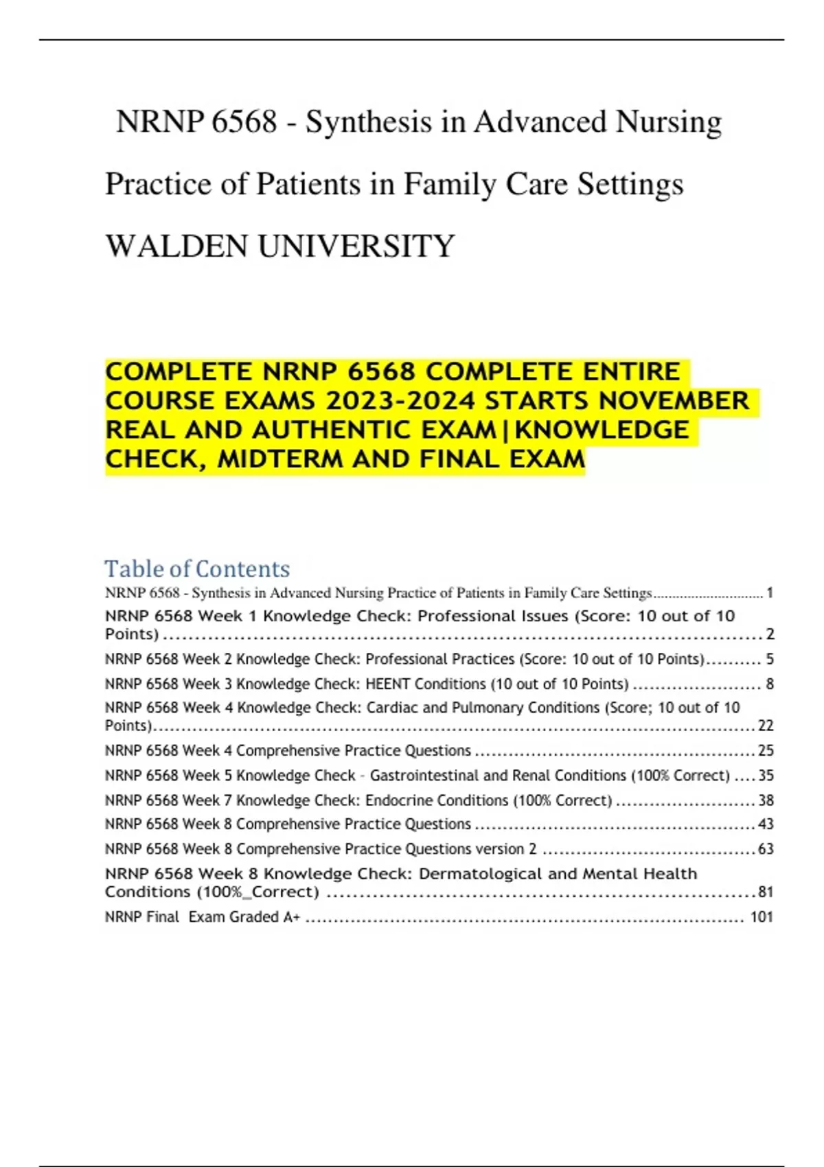 COMPLETE NRNP 6568 COMPLETE ENTIRE COURSE EXAMS REAL AND AUTHENTIC EXAM|KNOWLEDGE CHECK, MIDTERM AND FINAL EXAM