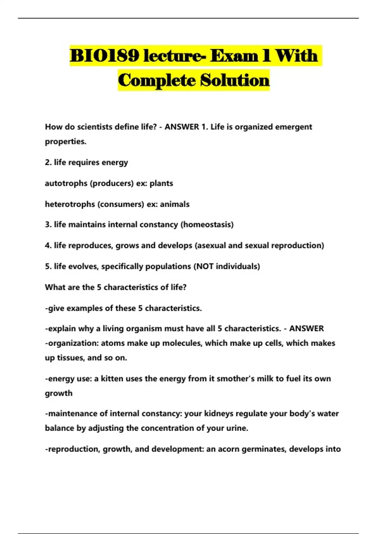 BIO189 BUNDLED EXAMS WITH SOLUTION