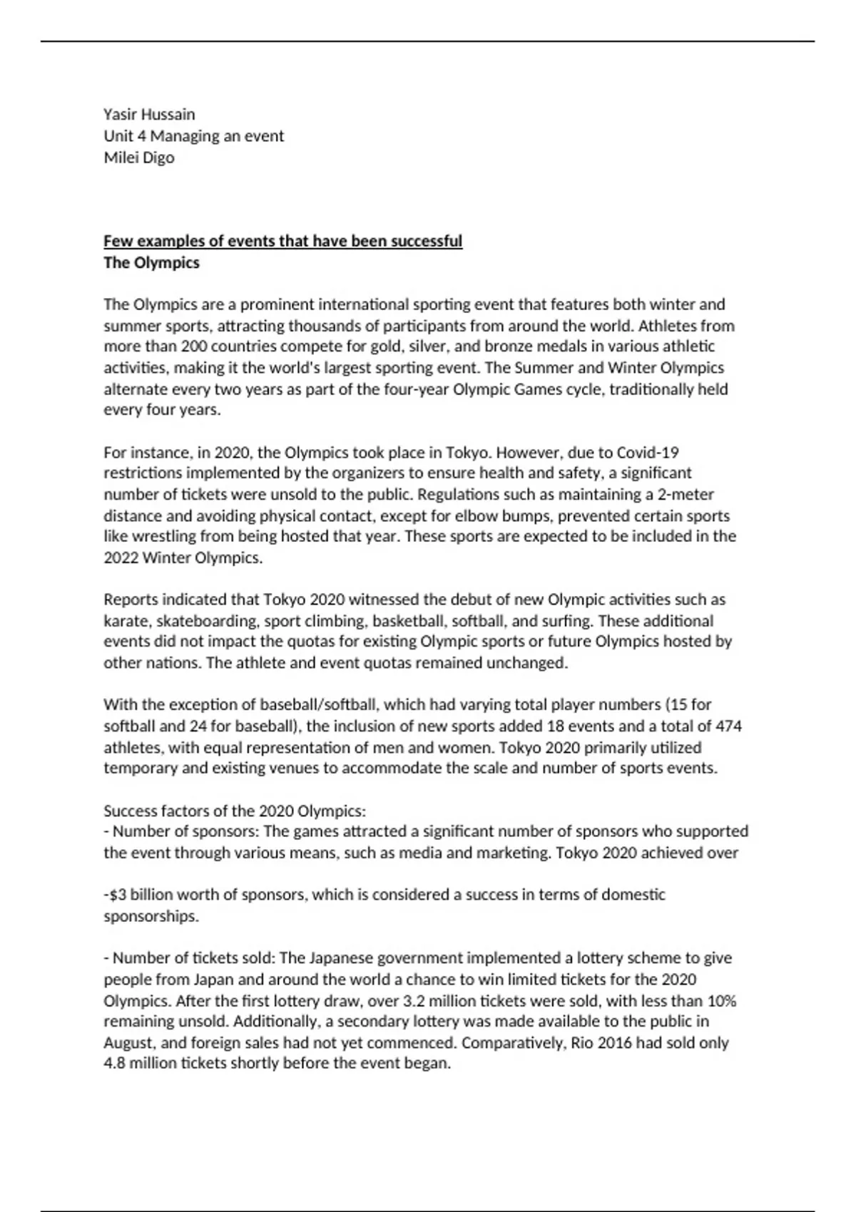activities, making it the world's largest sporting event. The Summer and Winter Olympics