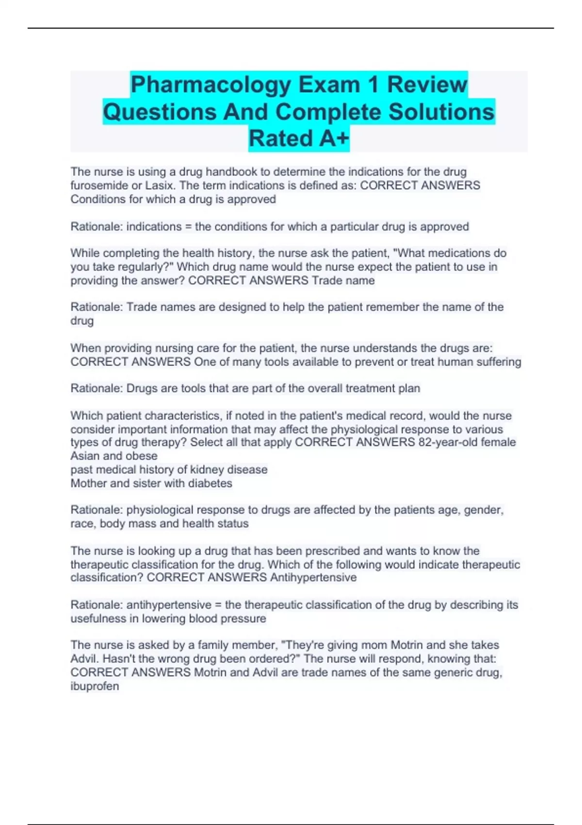 Pharmacology Exam 1 Review Questions And Complete Solutions Rated A+