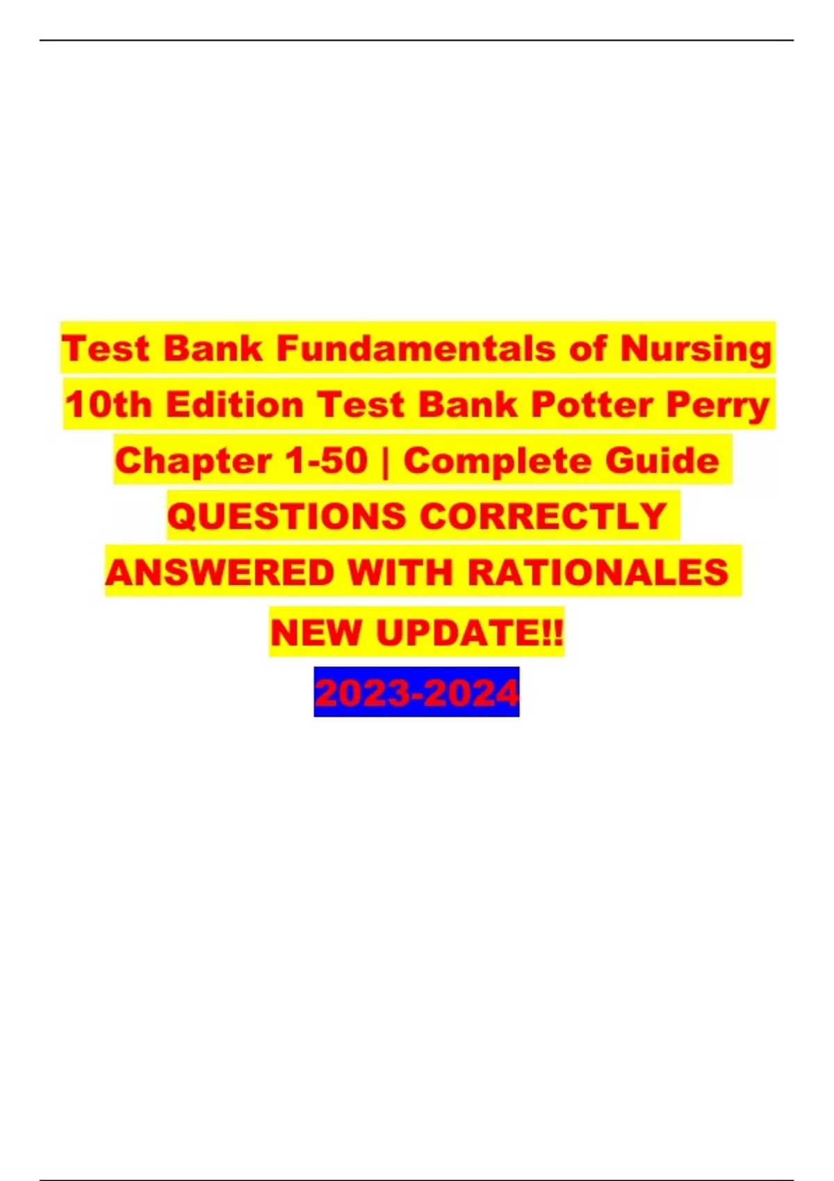 Test Bank Fundamentals of Nursing 10th Edition Test Bank Potter Perry Chapter 1-50 | Complete Guide QUESTIONS CORRECTLY ANSWERED WITH RATIONALES NEW UPDATE!!