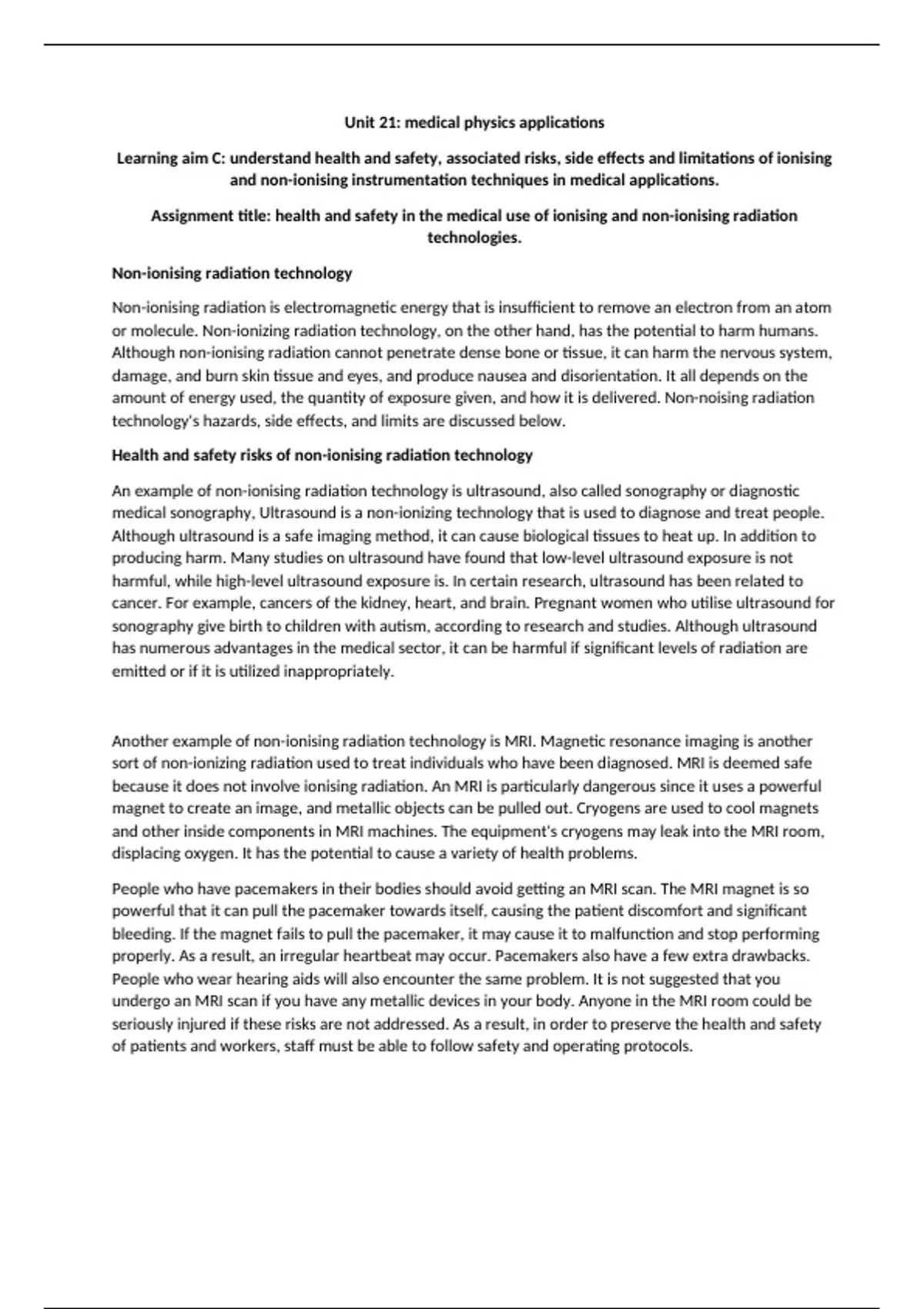 Assignment title: health and safety in the medical use of ionising and non-ionising radiation