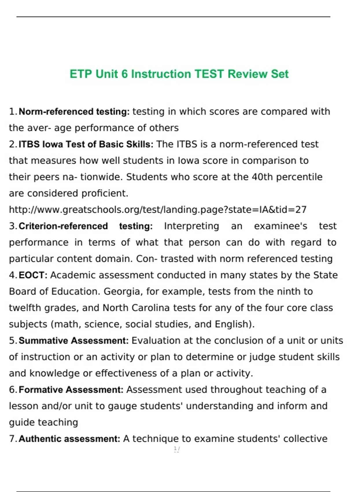 ETP Unit 6 Instruction TEST Review Set With Complete Solution