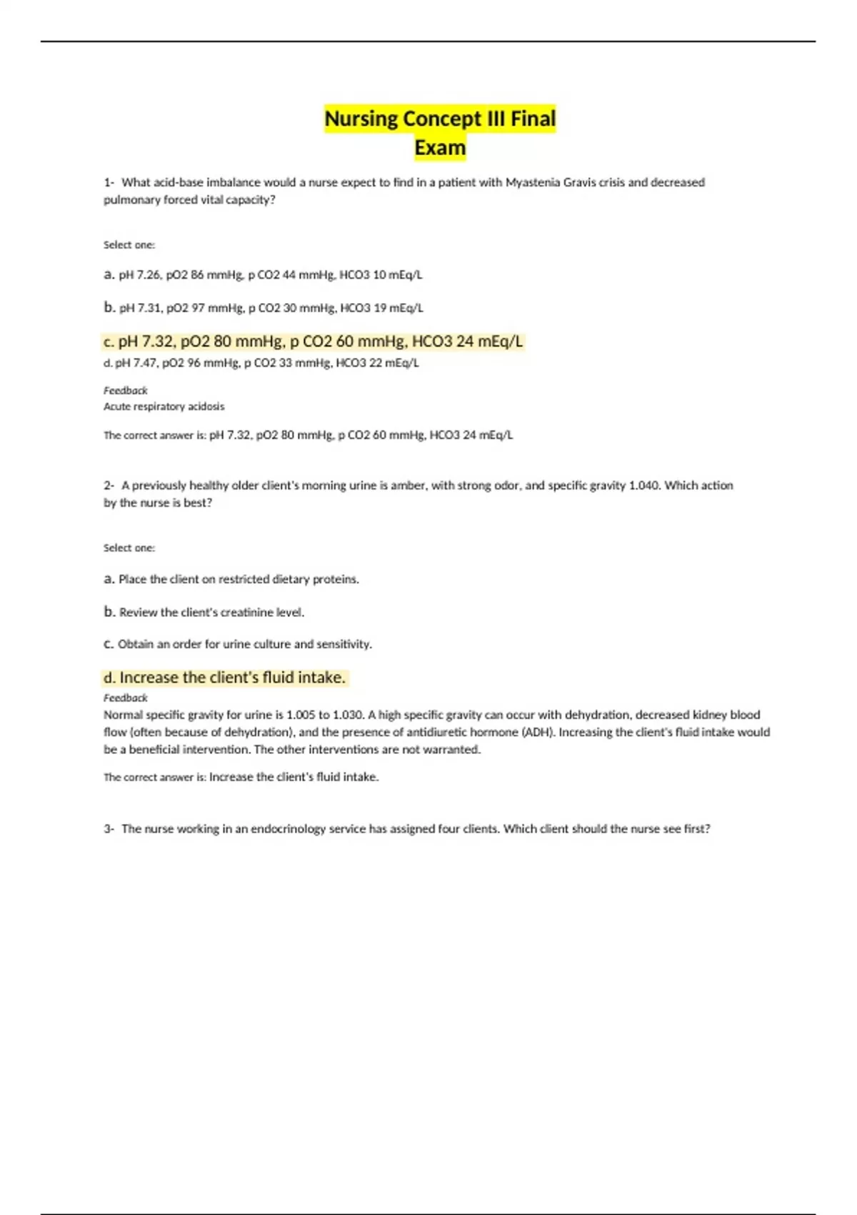 Nursing Concept III Final ExamNursing Concept III Final ExamNursing Concept III Final Exam