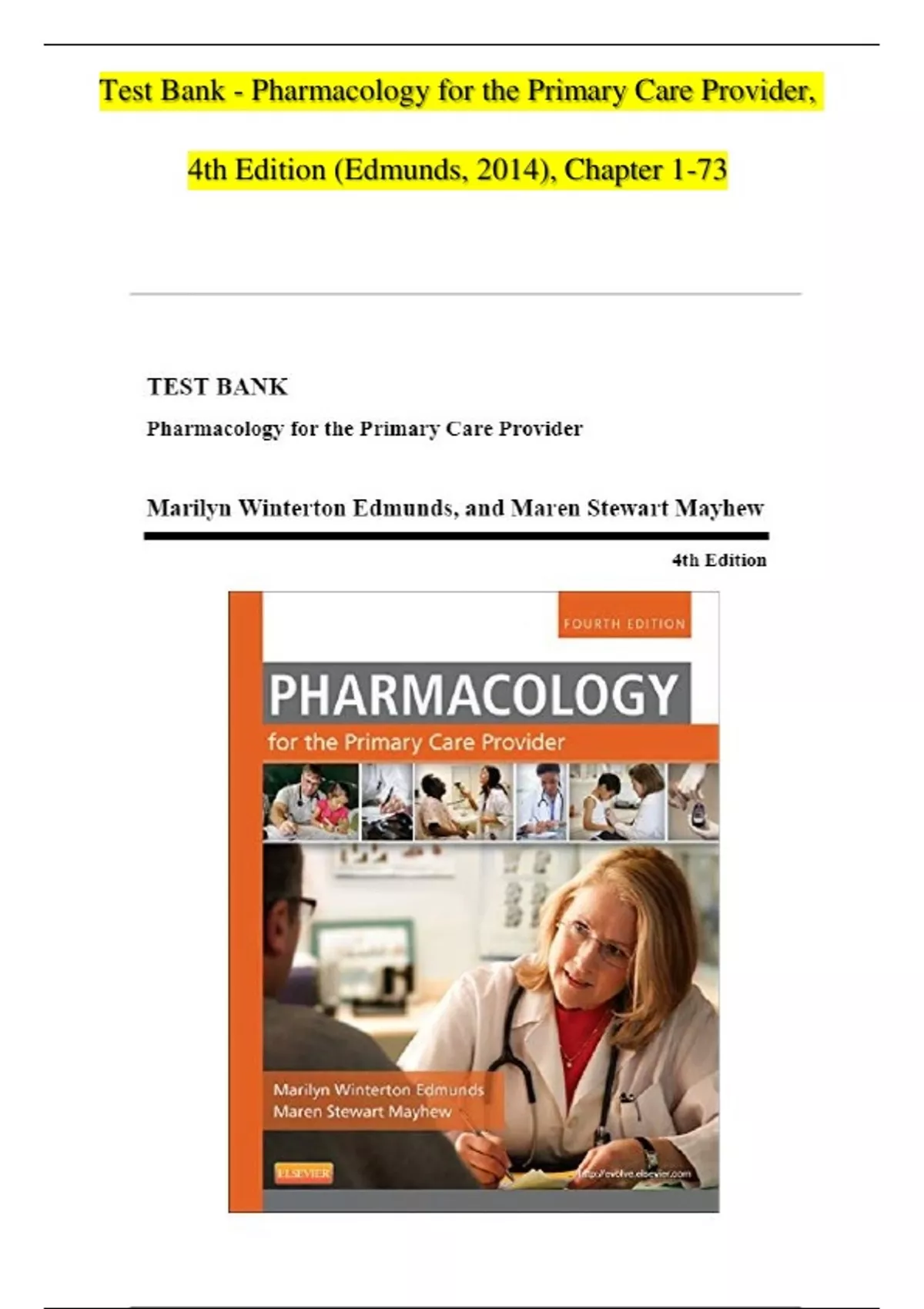 Test Bank - Pharmacology for the Primary Care Provider, 4th Edition (Edmunds, 2014), Chapter 1-73 | All Chapters