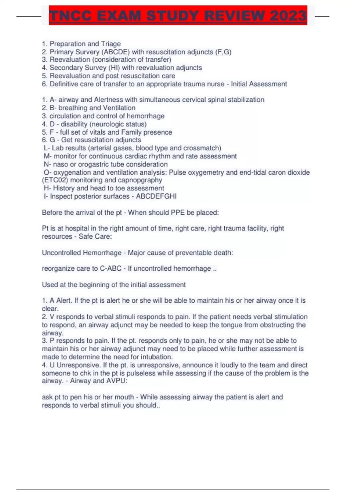 TNCC EXAM STUDY REVIEW 2023