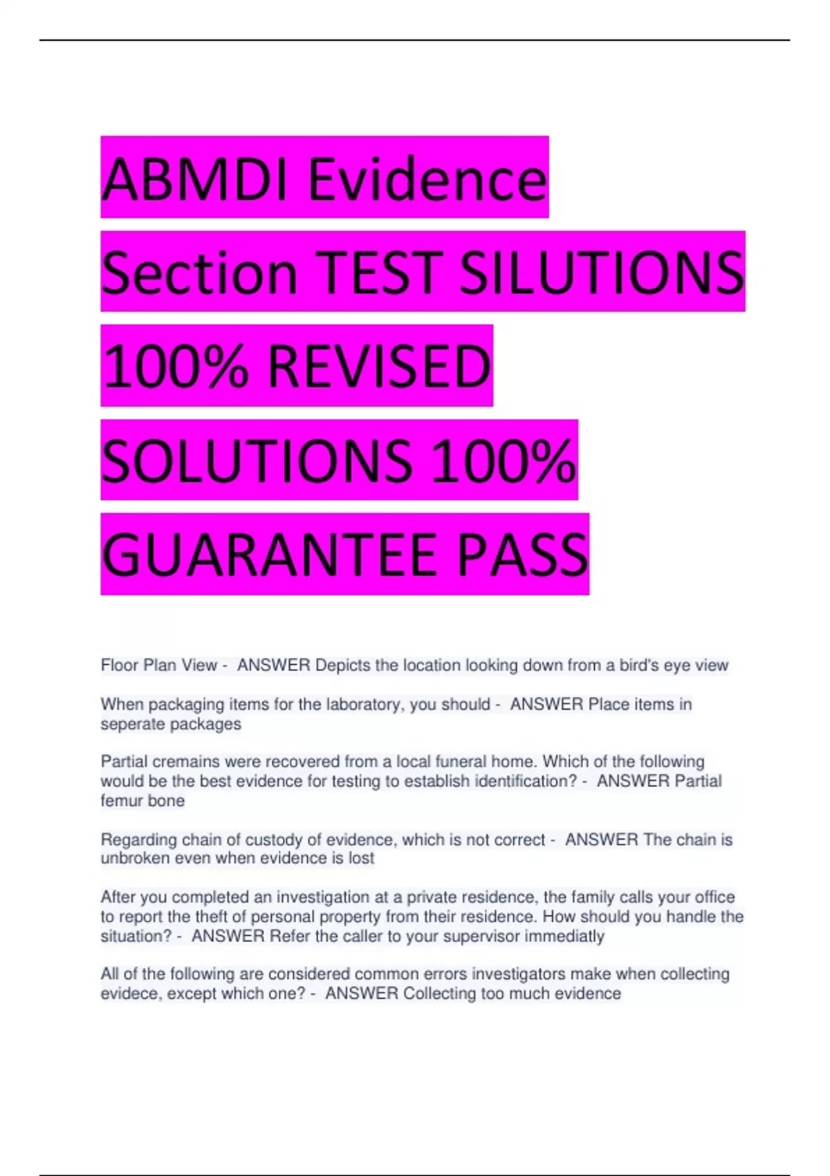 LATEST ABMDI Evidence Section TEST SOLUTIONS(A+ GUARANTEE)