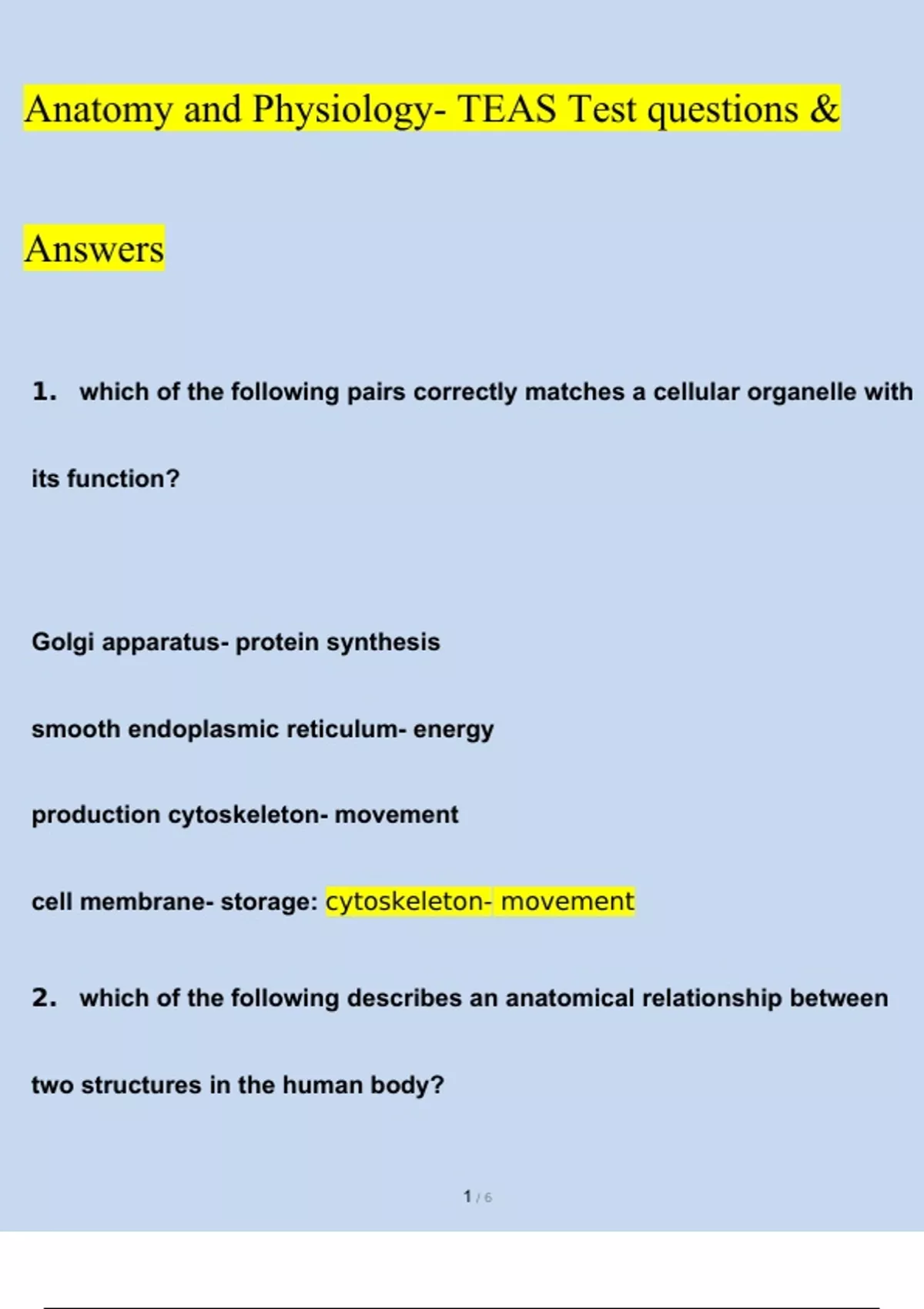 Anatomy and Physiology- TEAS Test questions & answers